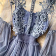 Women's Lace Flower Mesh Lantern Sleeve Long Dress