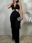 New Women Sexy Tassel Halter Bandage Jumpsuits Elegant Backless Sleeveless Slim Long jumpsuit