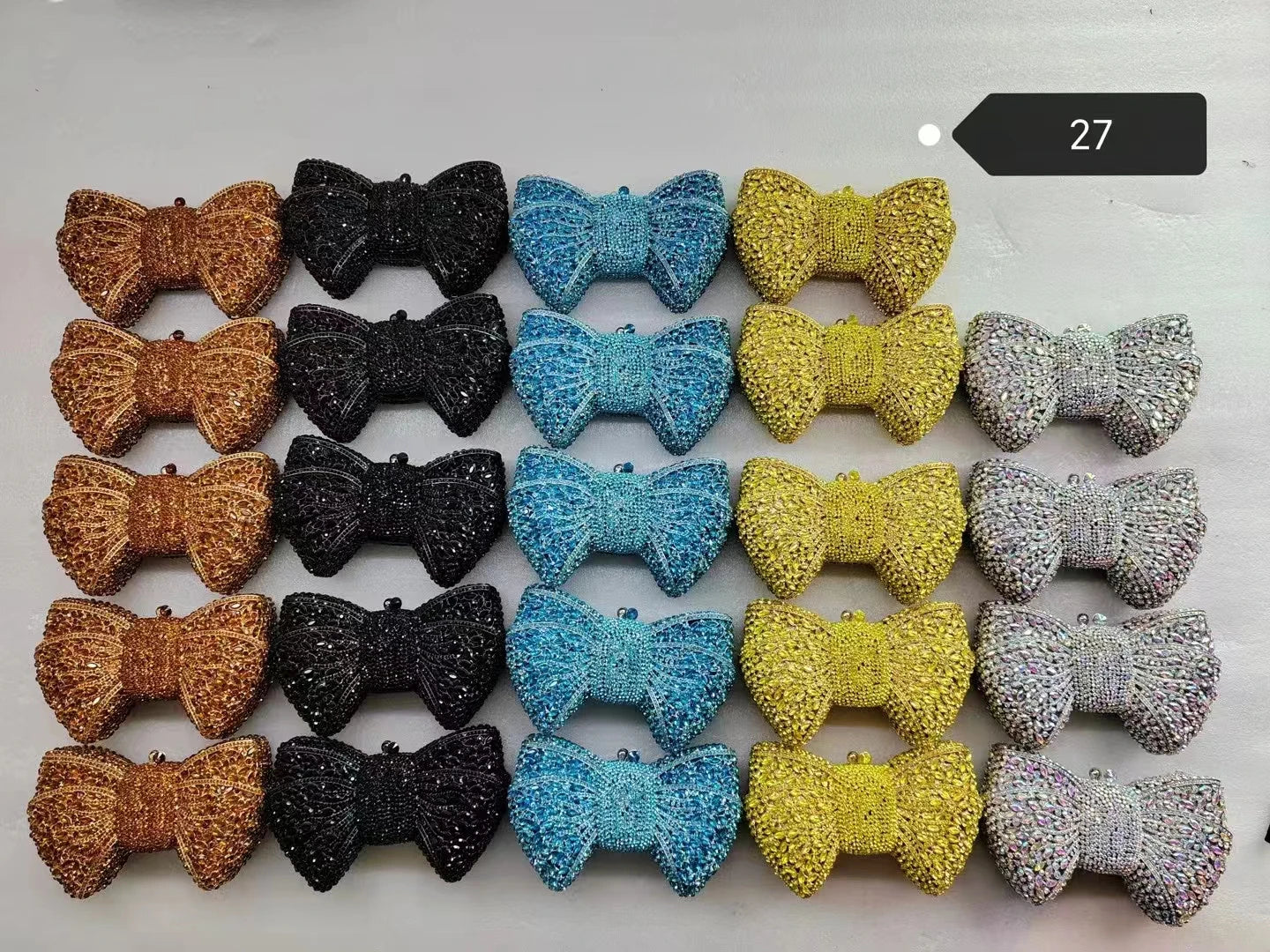 Rhinestone Green/Black Clutch Purse Bow Luxury Diamond Evening Clutches Wedding Bridal Bag