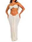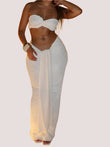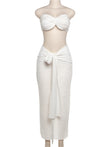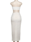 Stacked Folds Two Piece Set Women Solid Thin Strapless Chest Tops+ Slim Skirts Female Vacation Outfit