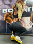 Black Solid Color U-Neck Yoga Jumpsuits Belly-Hollow Sleeveless Fitness Jump Suits