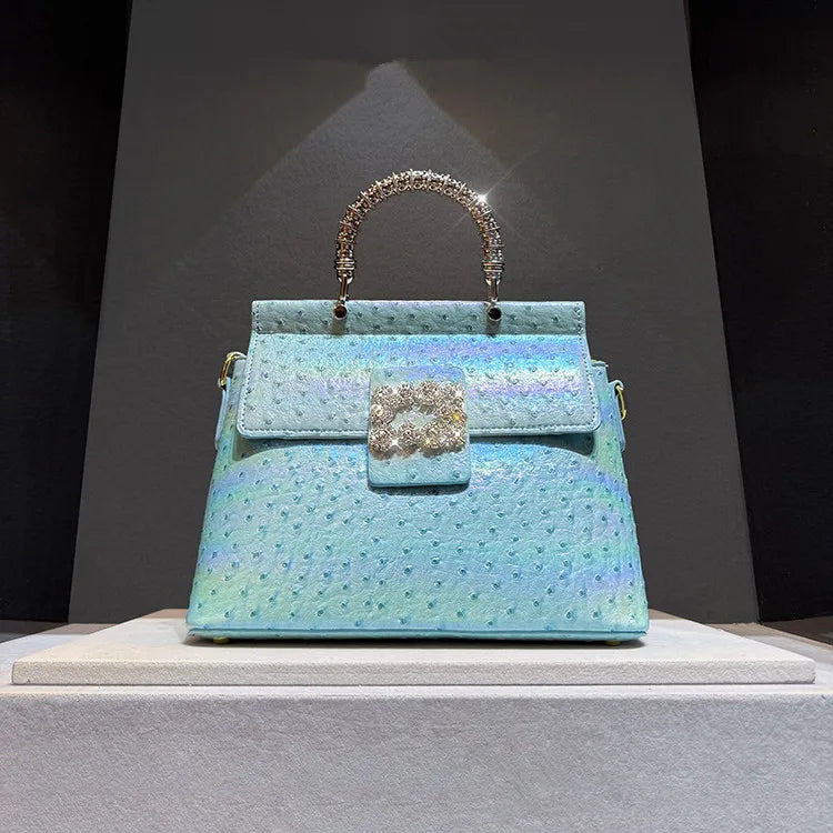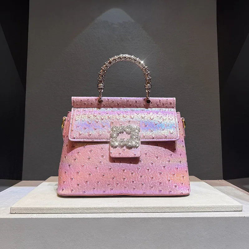 Ostrich Pattern Leather Women's Handbags Diamond-encrusted Shell Bag