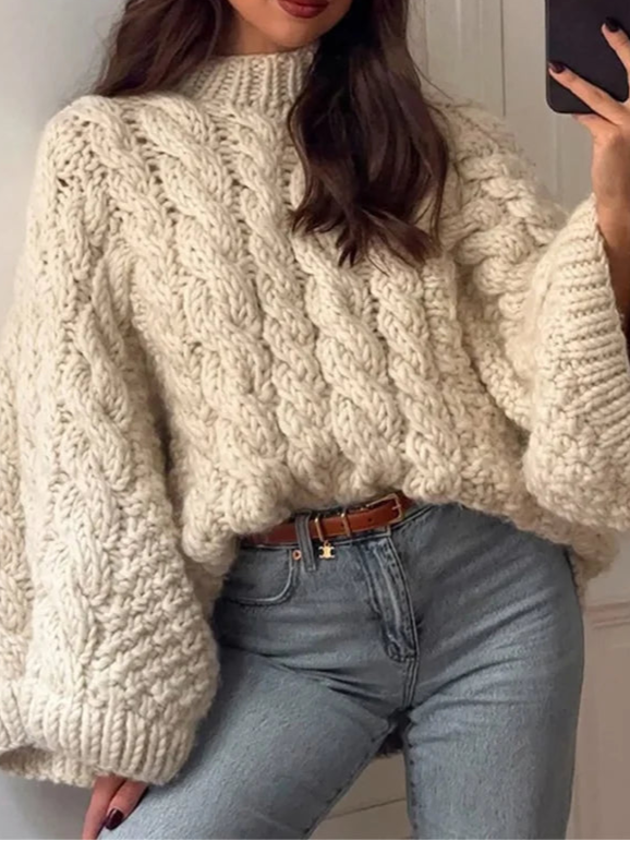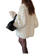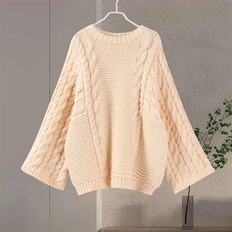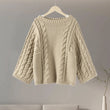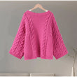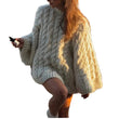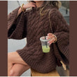 Oversize Thick Kink Sweater Women Loose O Neck Long Wide Sleeves Knit Lazy Pullover