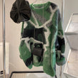 Oversized Women Casual Pullovers Patchwork Jumper with Diamonds Y2k Sweater