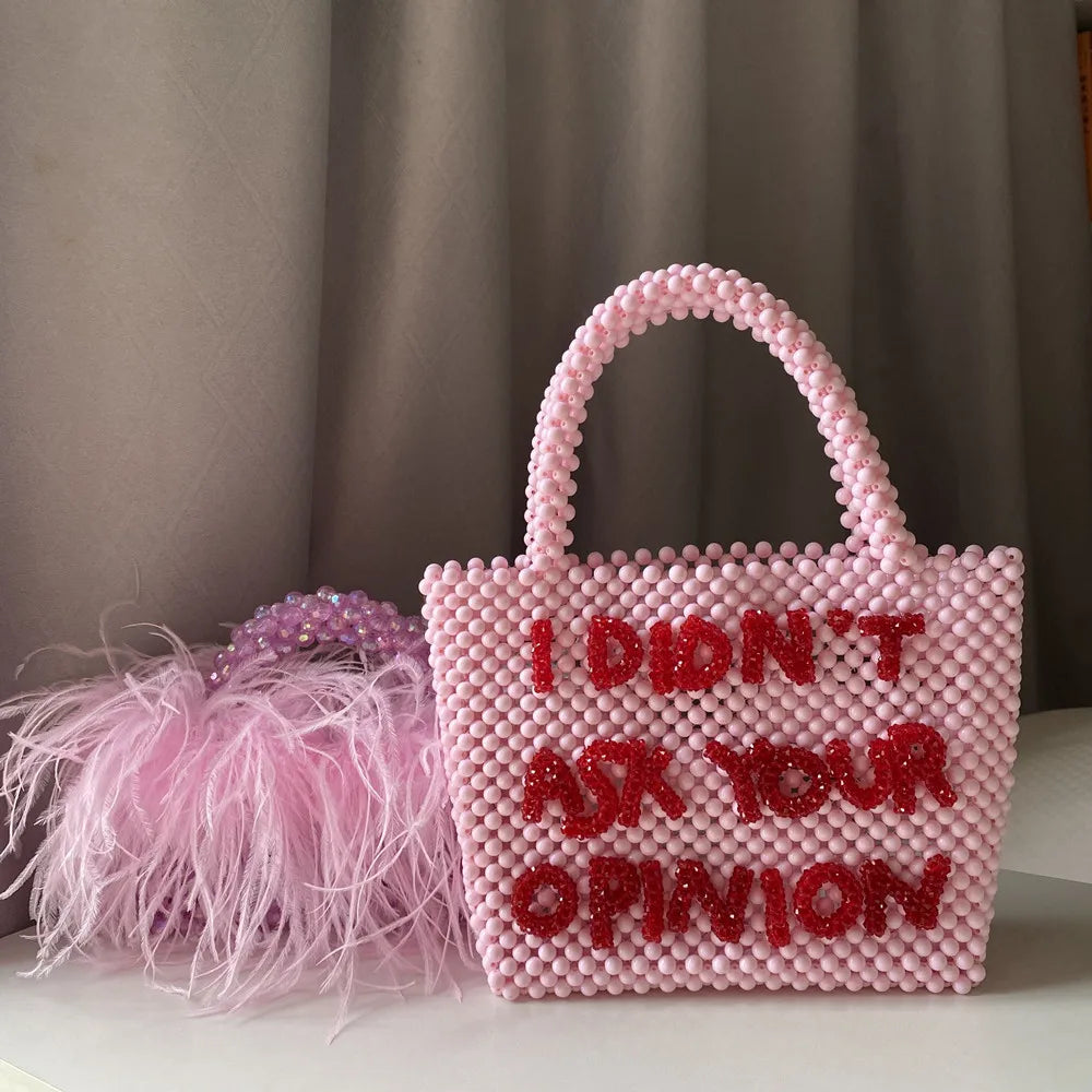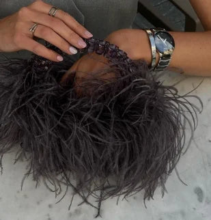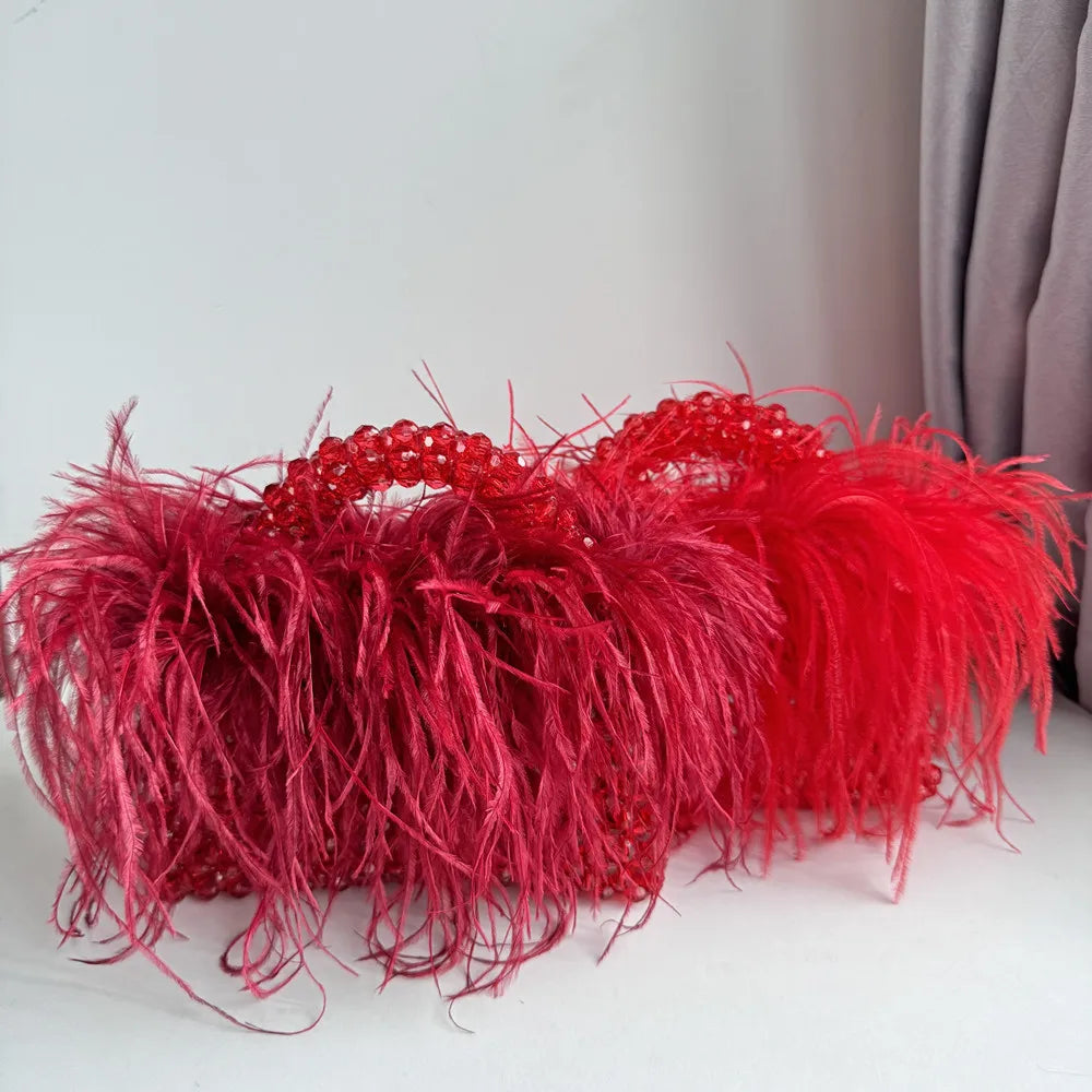 Pearl Bead Bag With Feather Fur Designer Brand Clear Acrylic Crystal Handbag Handmade