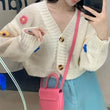 Colorful Flower Cardigan for Women Cute Long Sleeve V-neck Knit Crop Sweater