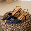 Thin Heels Women's Denim High Heels French Pointed Denim Heel Sandals