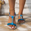 Flat Sandals for Women Rhinestone Elastic Back Strap Gladiator Sandals Woman Comfortable Non Slip Beach Shoes