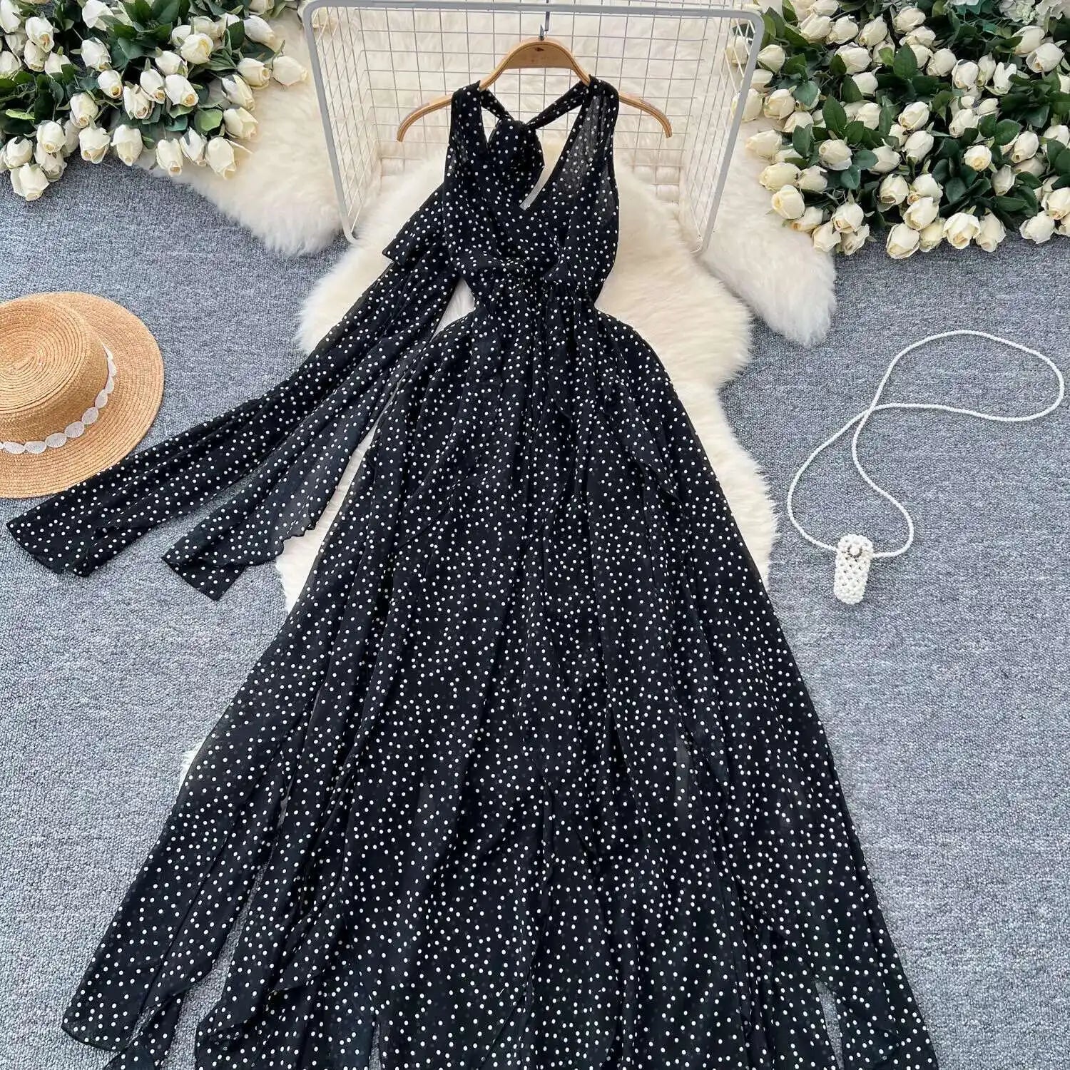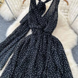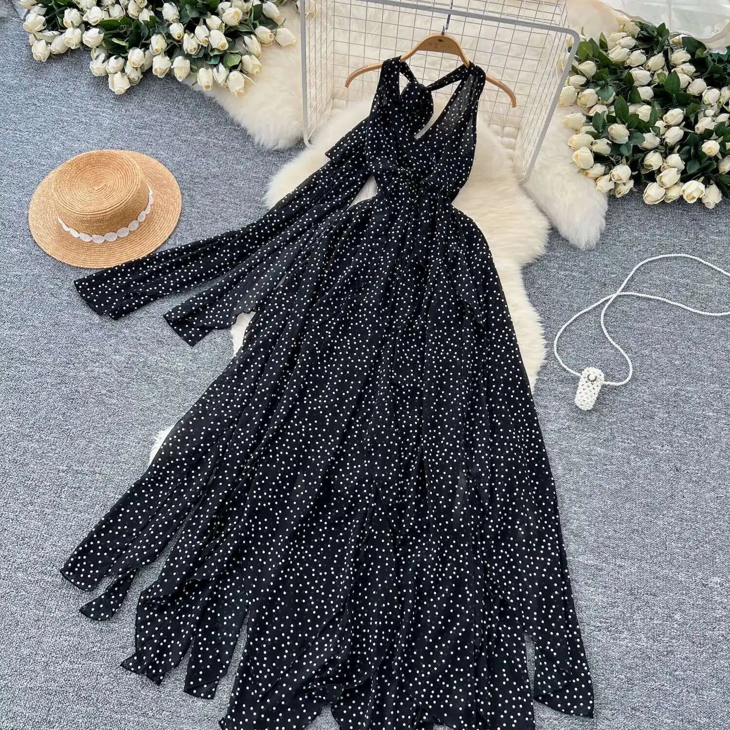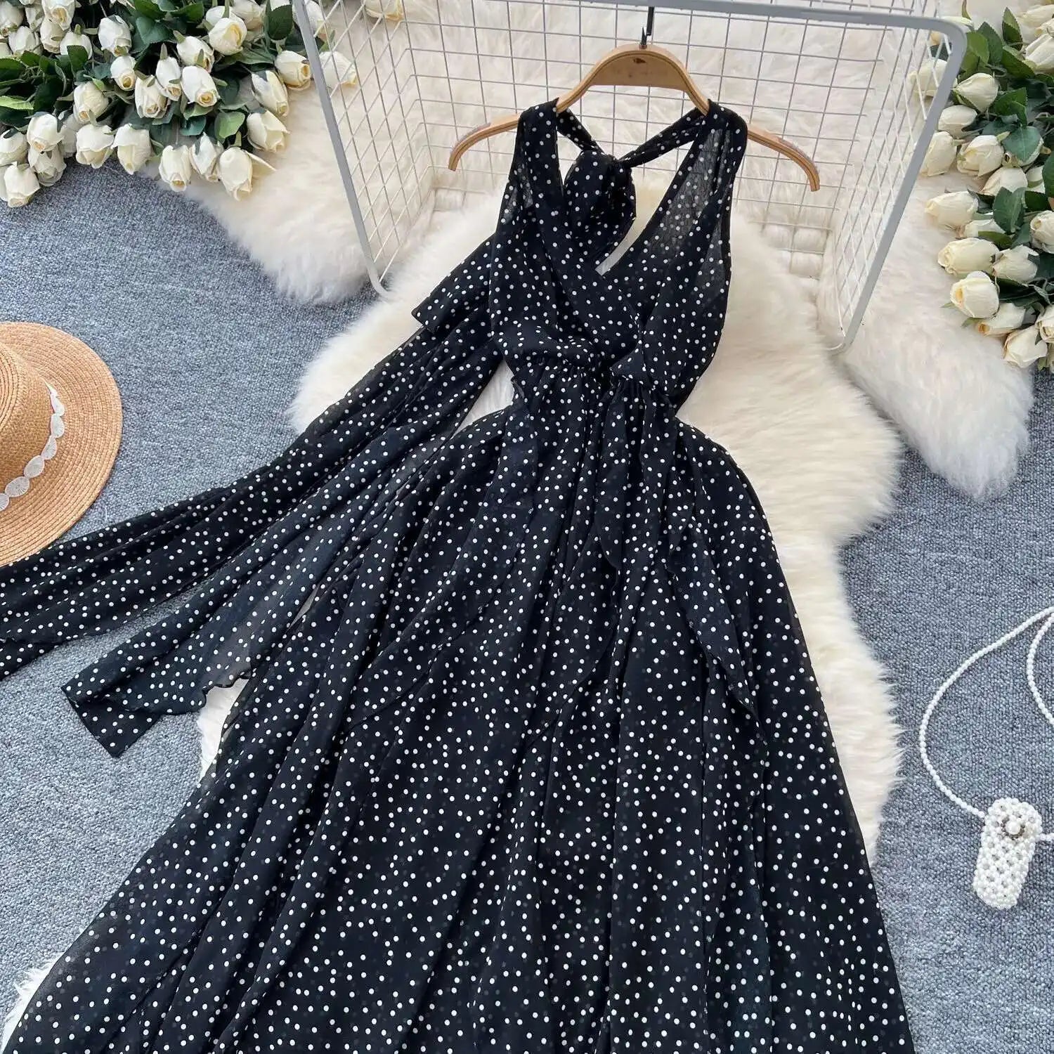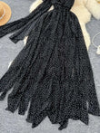 Runway Polka Dots Chiffon Dress Women Deep V Neck Long Maxi Dress