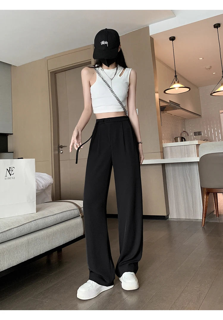 Chic High Waist String Wide Leg Women‘s Full Loose Trousers