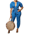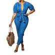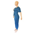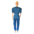 Denim Jumpsuit for Women Lace-up Pencil Pant Jeans Short Sleeve Sashes Long Rompers Playsuits One Piece Overalls Outfits