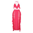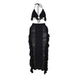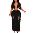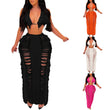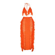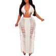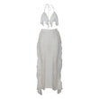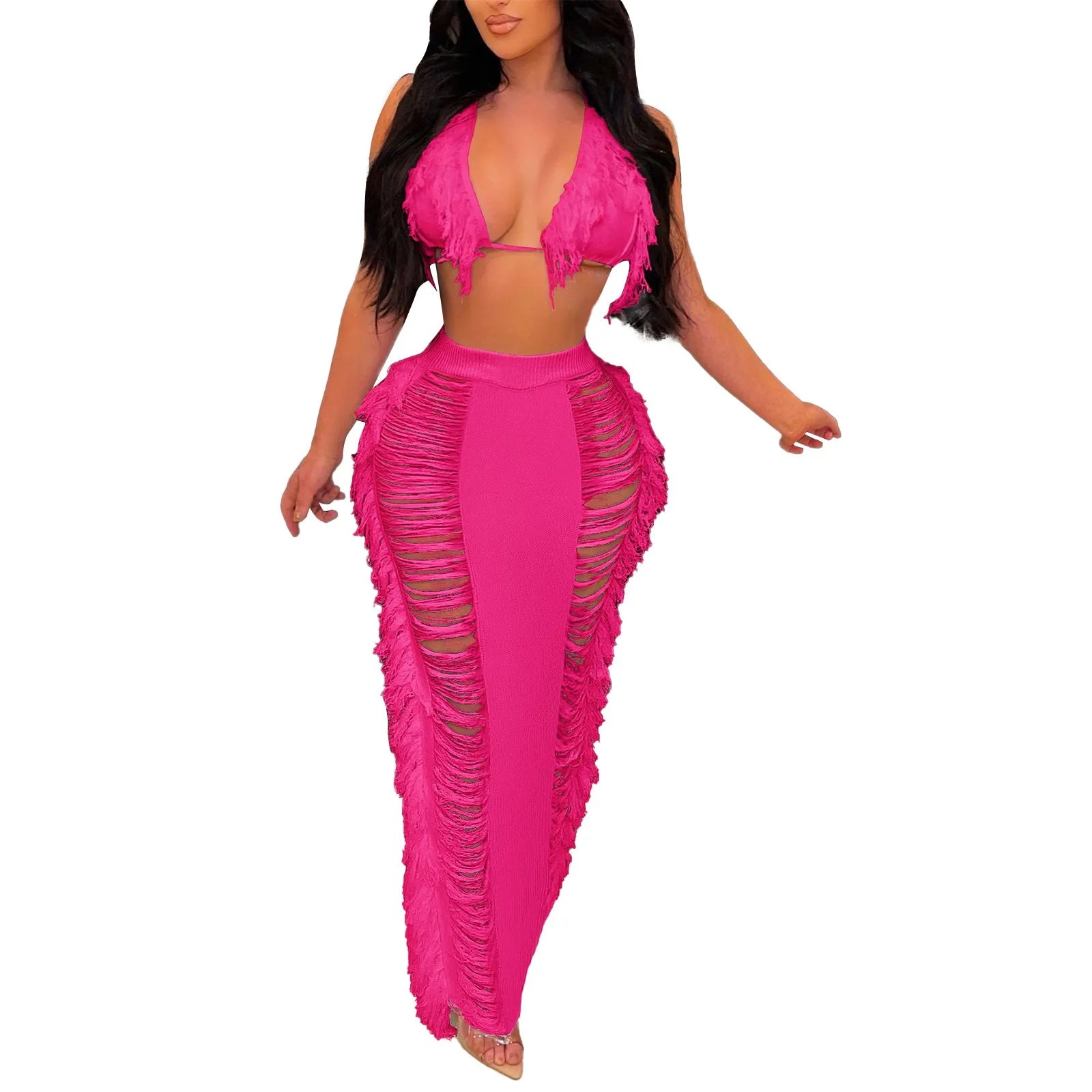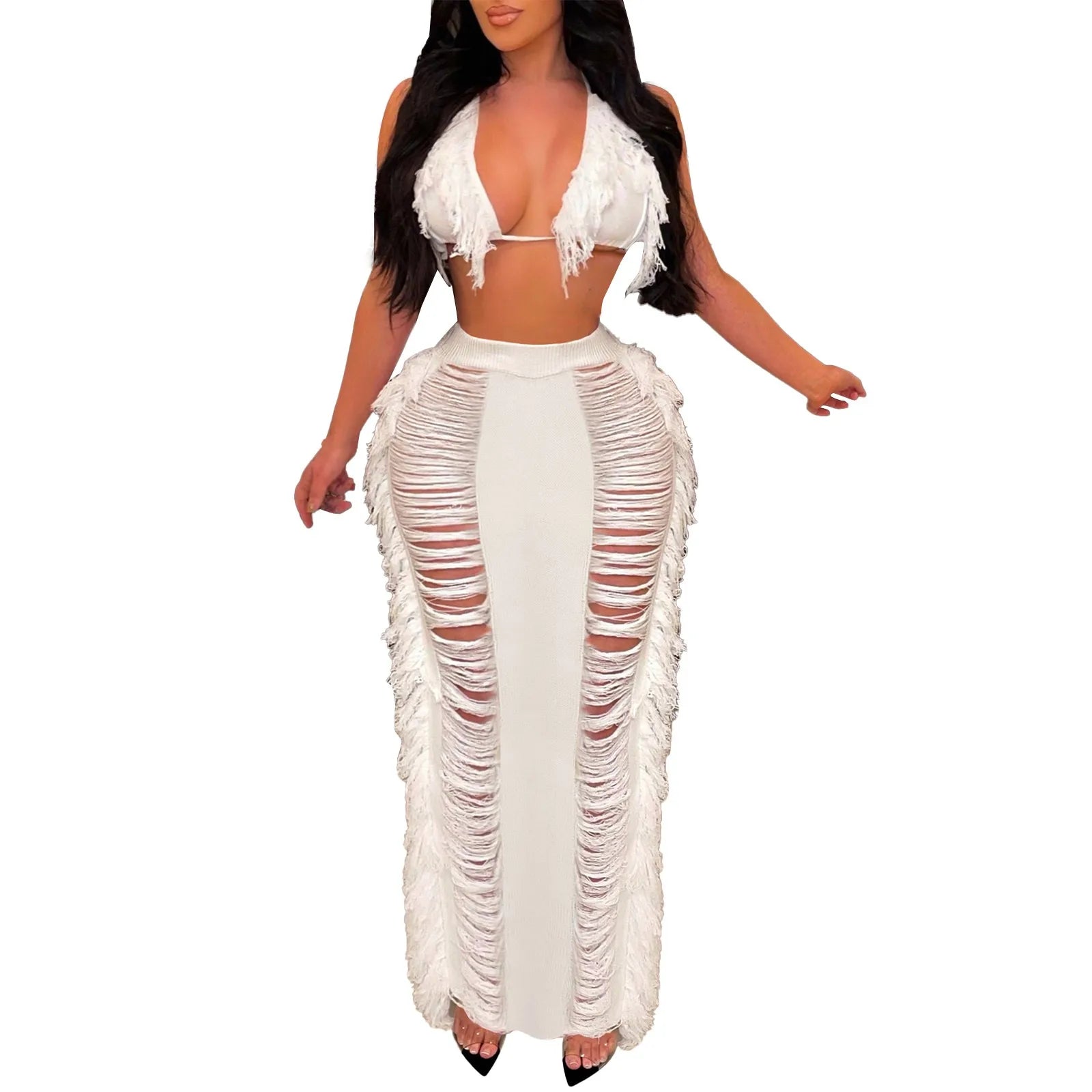 Sexy Elegant Hollow Out Knitted Tassel Wrap Hip Skirt Suit Women Vacation Beach 2 Piece Sets