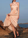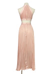 Sexy Halter Neck Cutout Pleated A-line Long Dress Pink Sleeveless Backless Party Dress