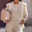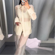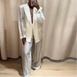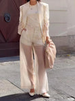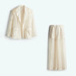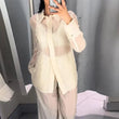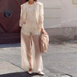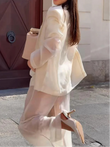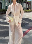 Sexy See Through Silk Set Women Elegant Blazer Coat Loose Shirt Wide-leg Pants