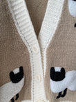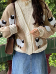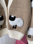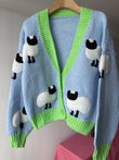 Sheep Pattern Crochet Chunky Knit Cardigan Cute Cartoon V Neck Sweater