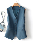 Single-Breasted Vest Top Slim Thin Short Waistcoat V-Neck Tops Outwear