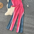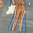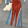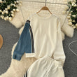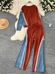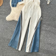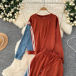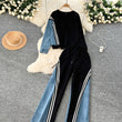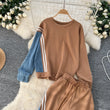 Autumn Fashion Casual Suits Women O Neck Basic Tops + Drawstring Long Pants Two Piece Set Denim Splice Korean Style Sporty 2pcs Sets