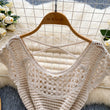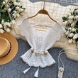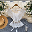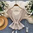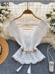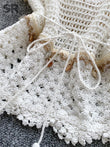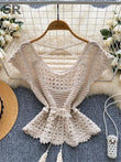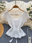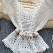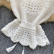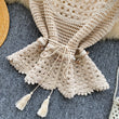 Bohemian Tassel Knit Tops Women Lace Up V Neck Elastic Summer Blouse Vacation Blouse