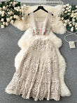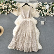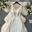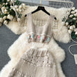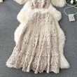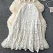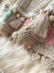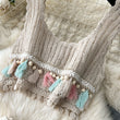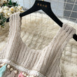 Bohemian Vintage Knit Two Piece Tank Tassels Crop Tops+Loose Hooked Hollow Out Skirt Beach Outfit