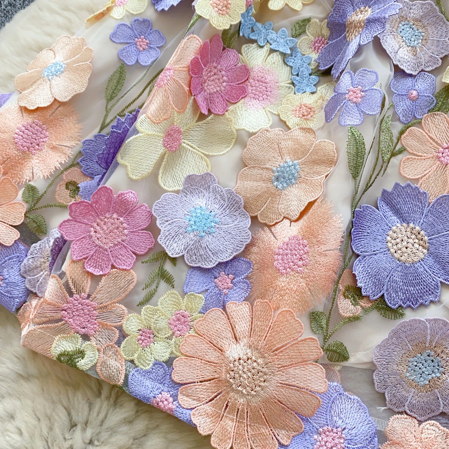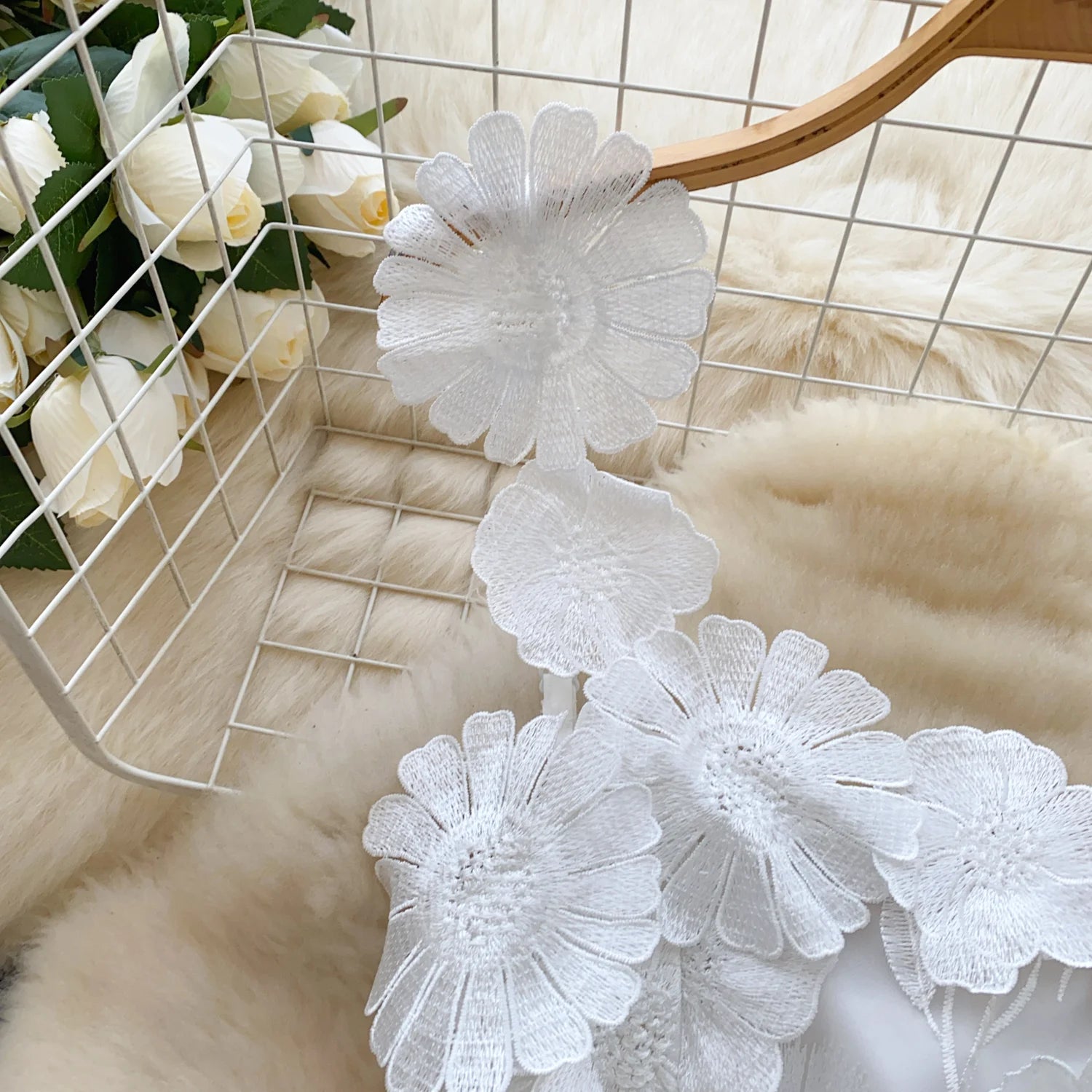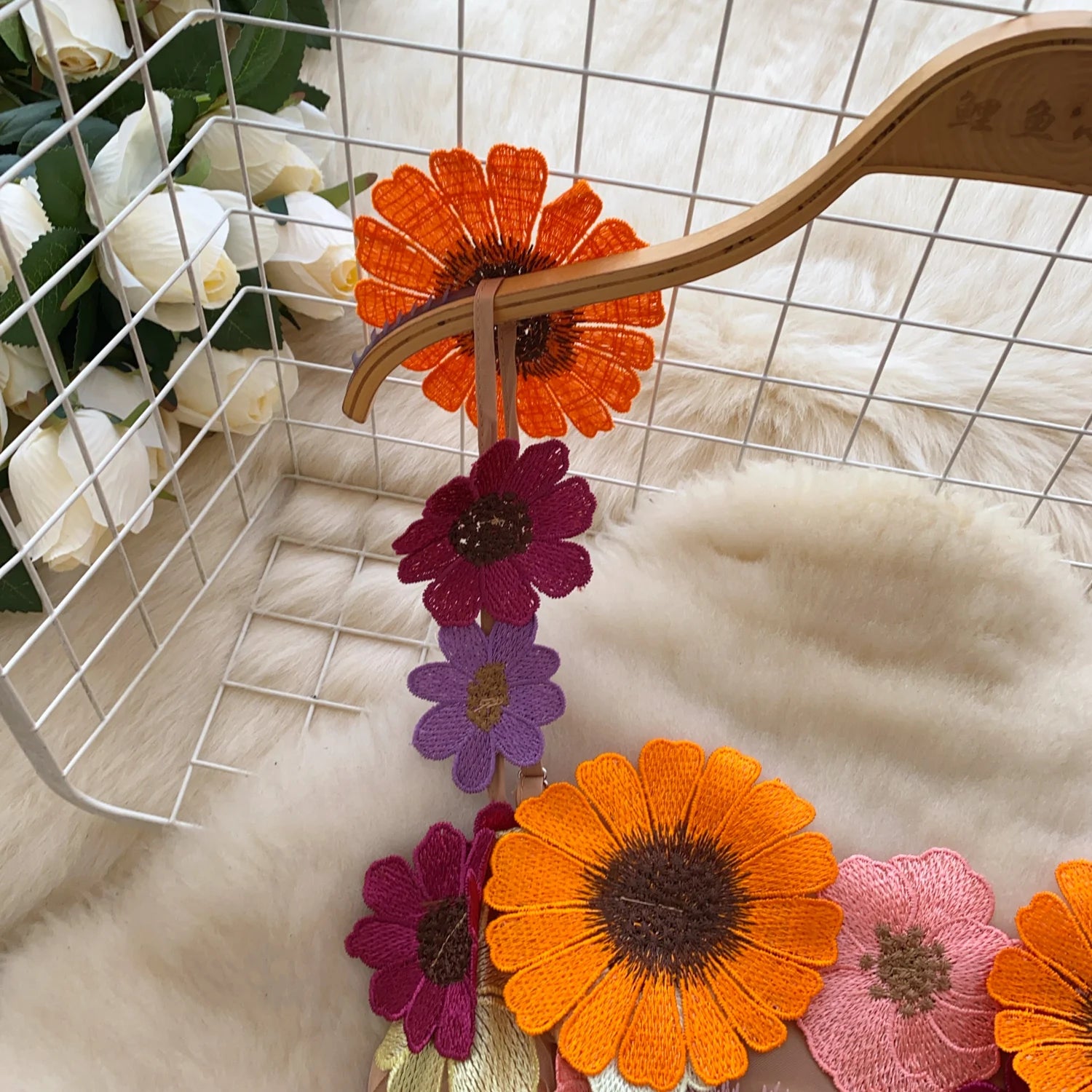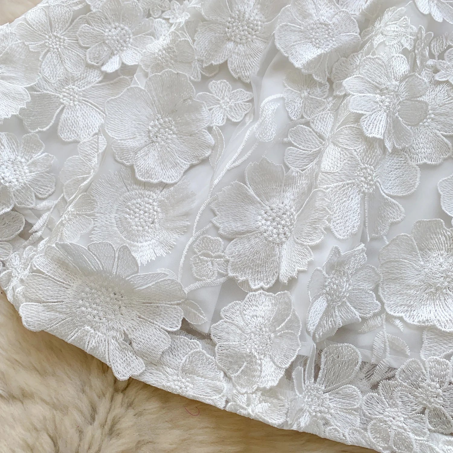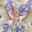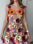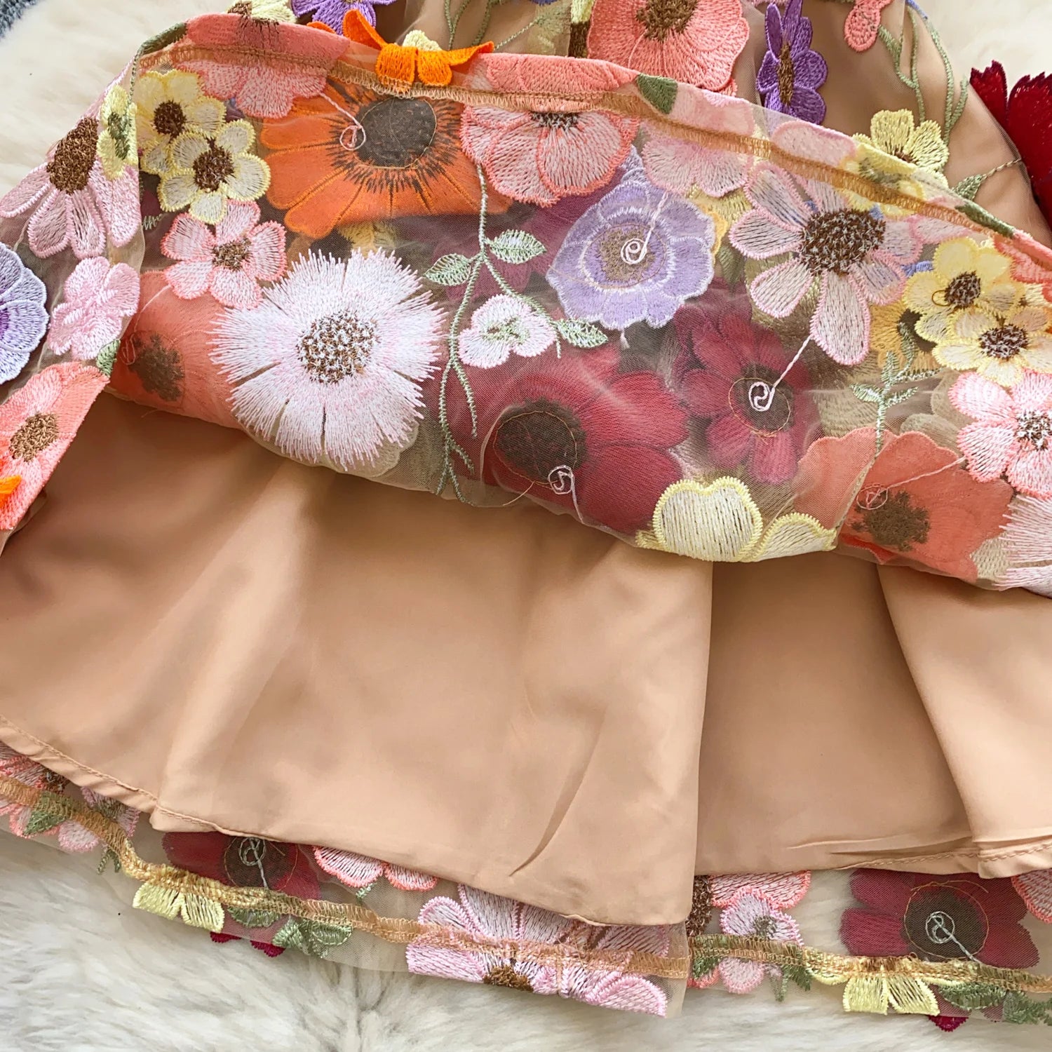 Chic Embroidery Strap Dress Women Sleeveless Zipper 3D Floral Design Summer Evening Dress