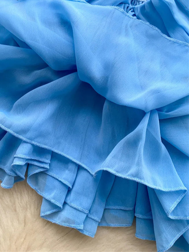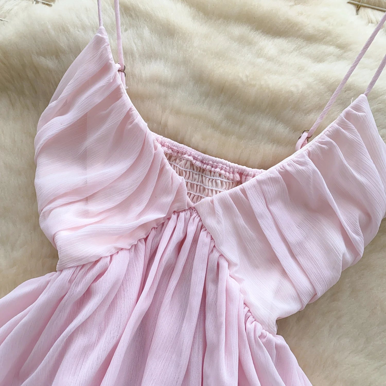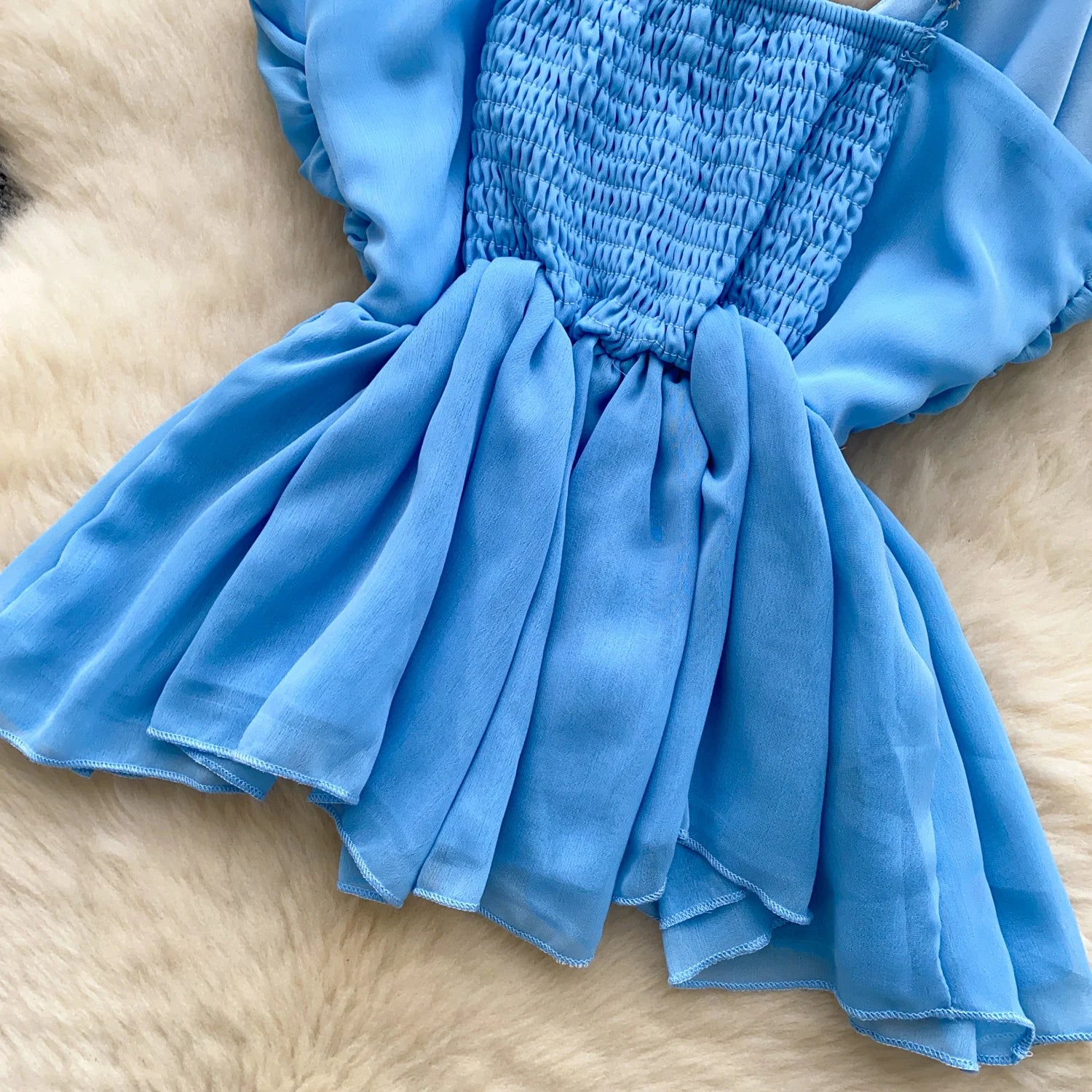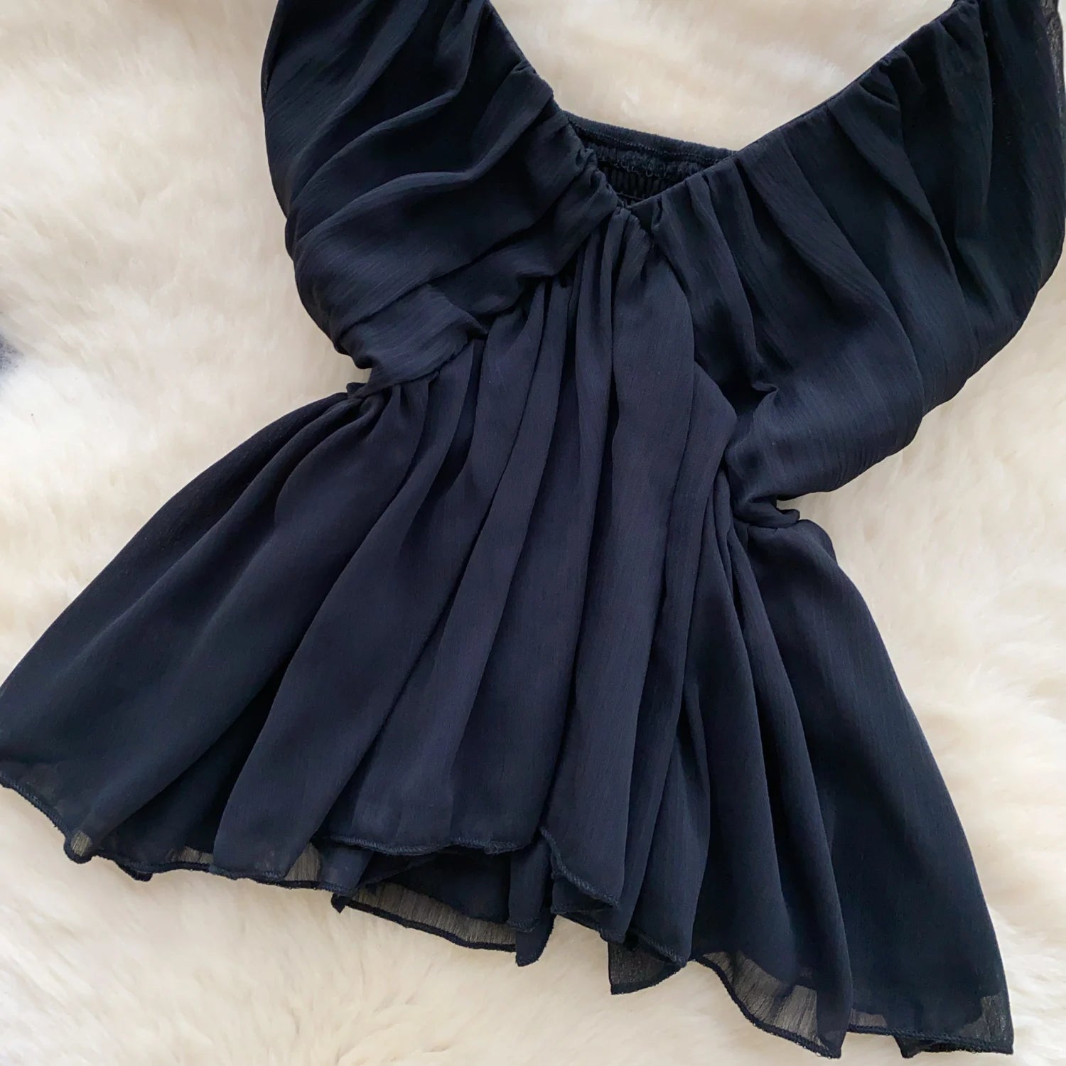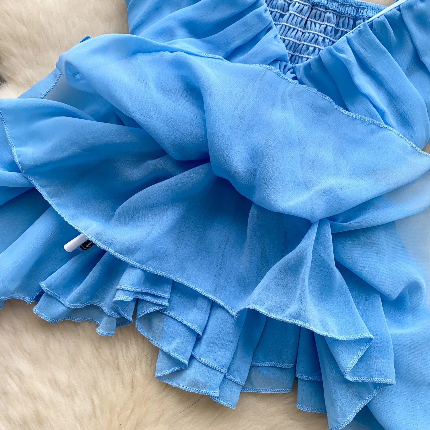 Chiffon Tops Straps Deep V Backless Top Ruffles Short Tank Top Vacation Style Sexy Tops