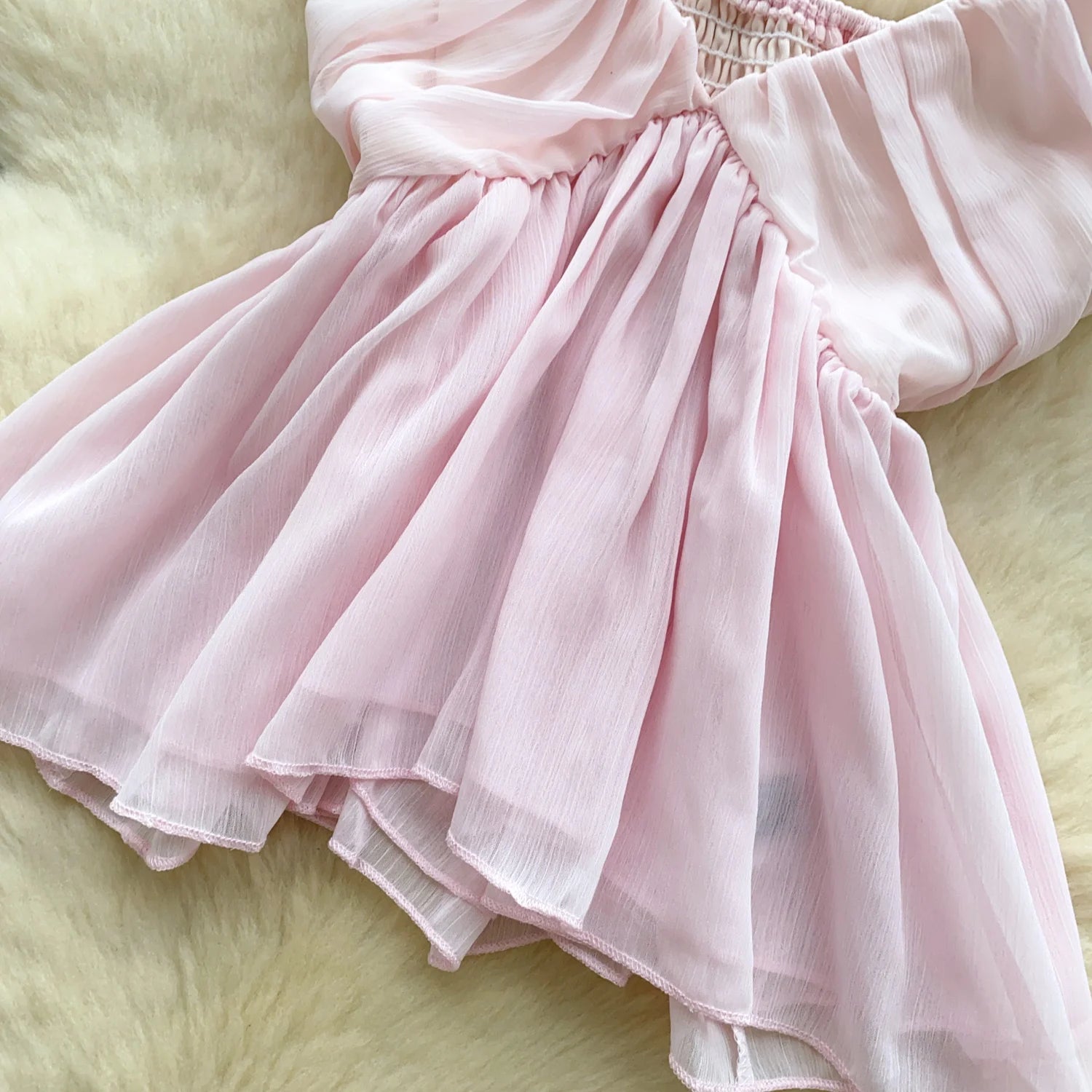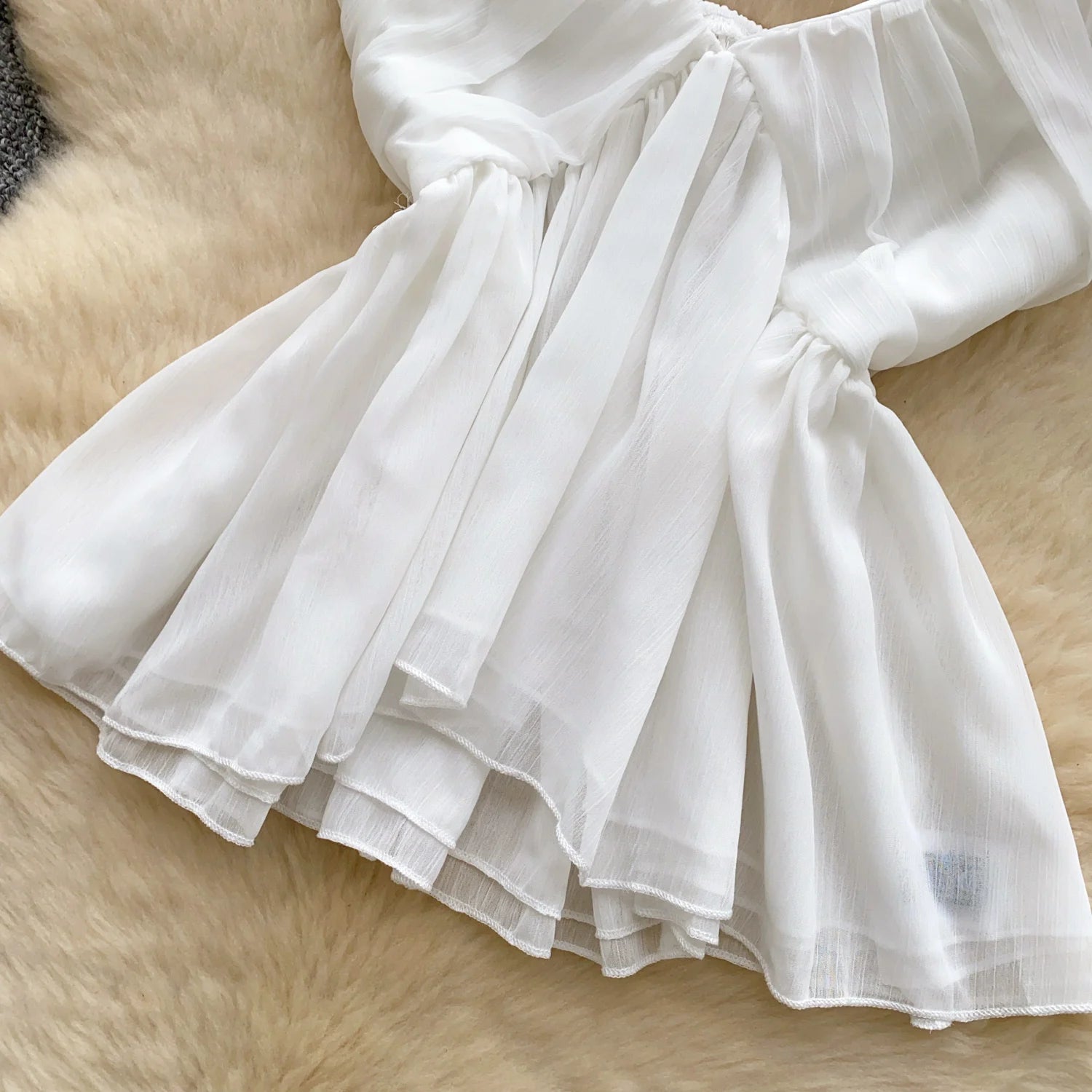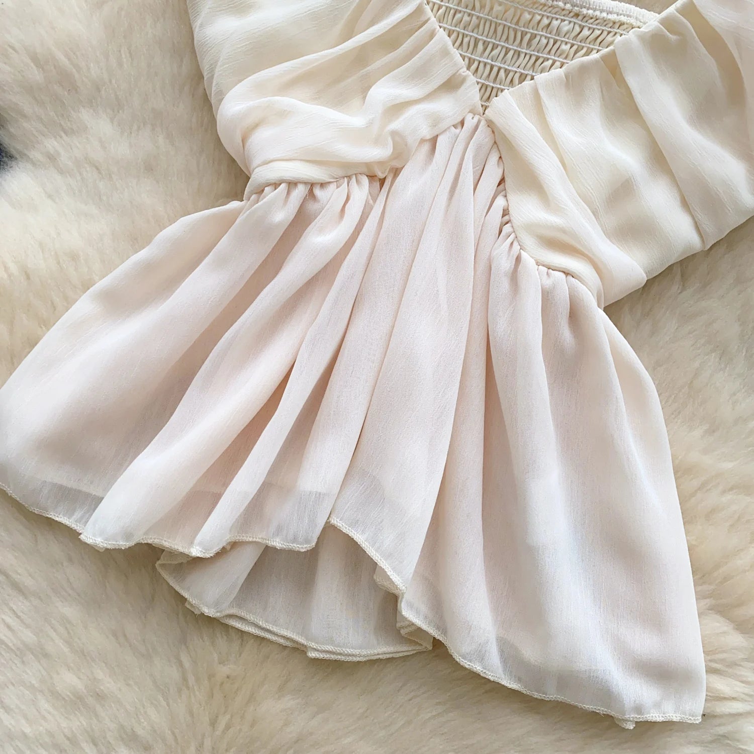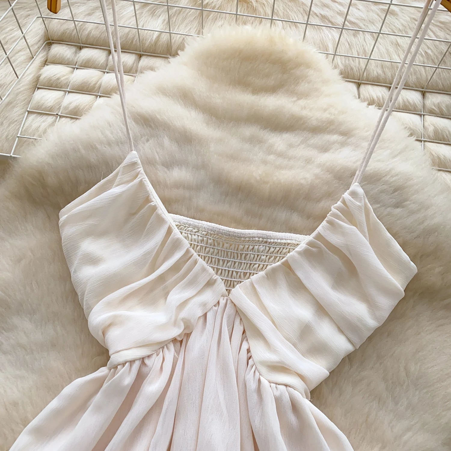 Chiffon Tops Straps Deep V Backless Top Ruffles Short Tank Top Vacation Style Sexy Tops