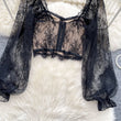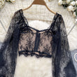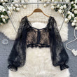 Lace Sexy Blouse Women Flare Sleeve Square Collar Embroidery Blouse High Quality Short Top