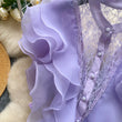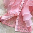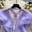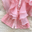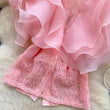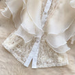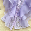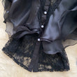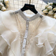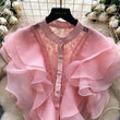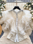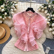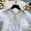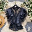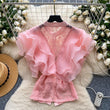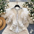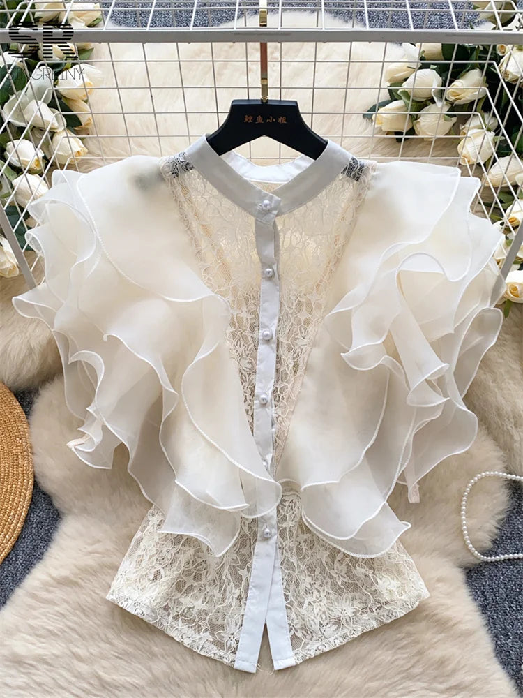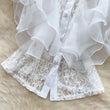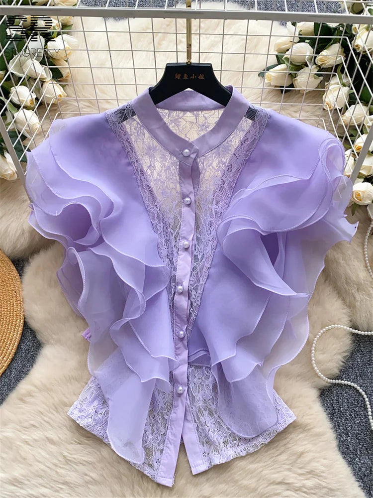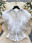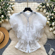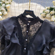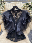Ruffle Blouses Women French Style Single Breasted Lace Patchwork Shirt Summer Top