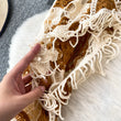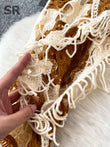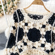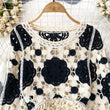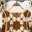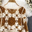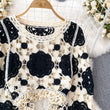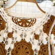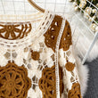 Sunscreen Hook Summer Knit Top Women Elegant O Neck Hollow Out Lantern Sleeve Ladies Vacation Tassel Beach Blouse