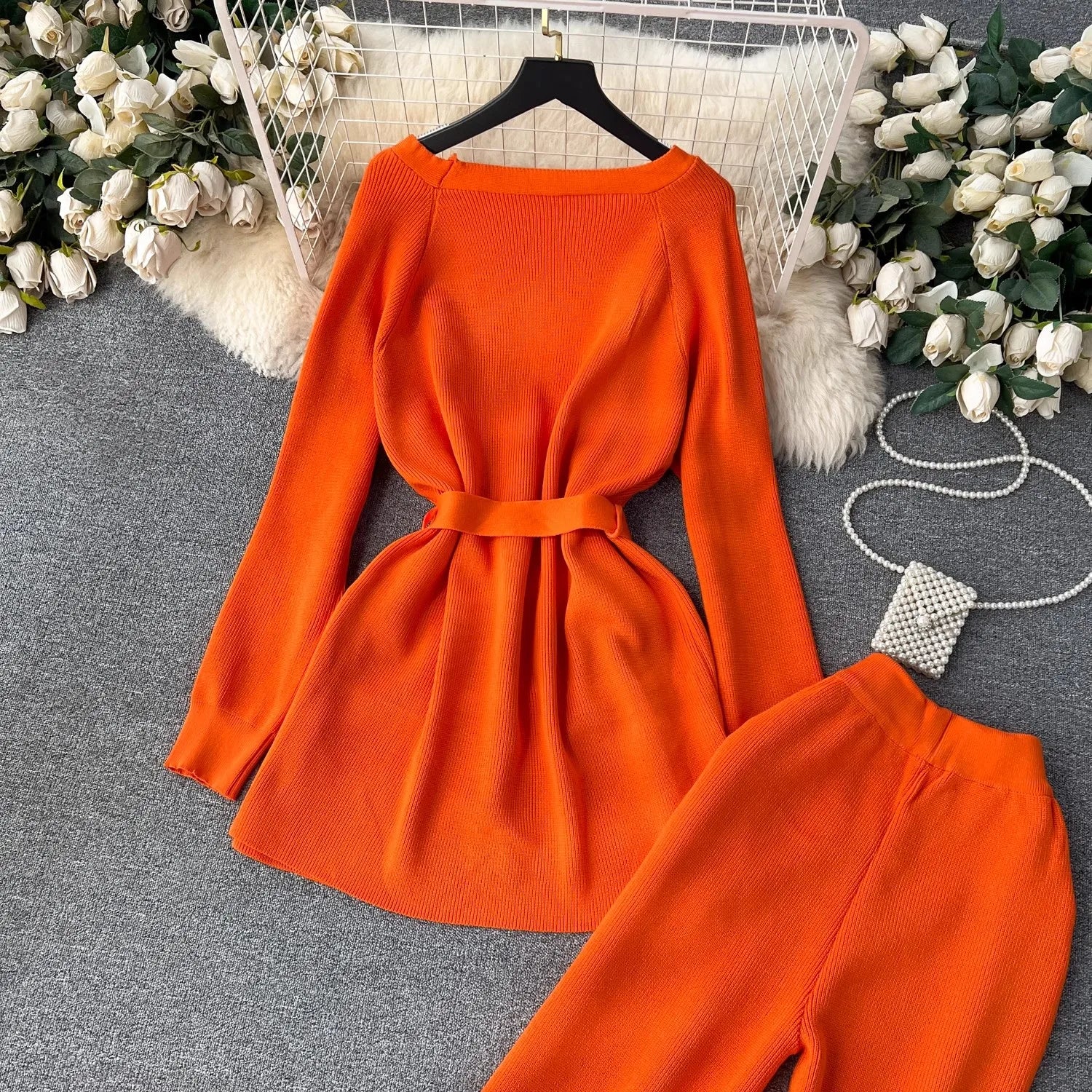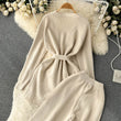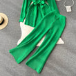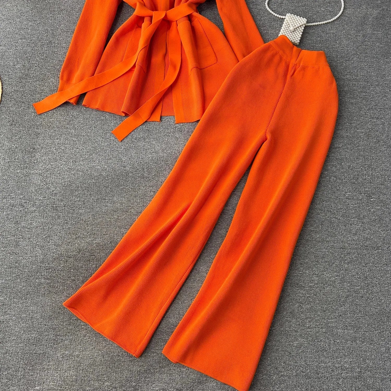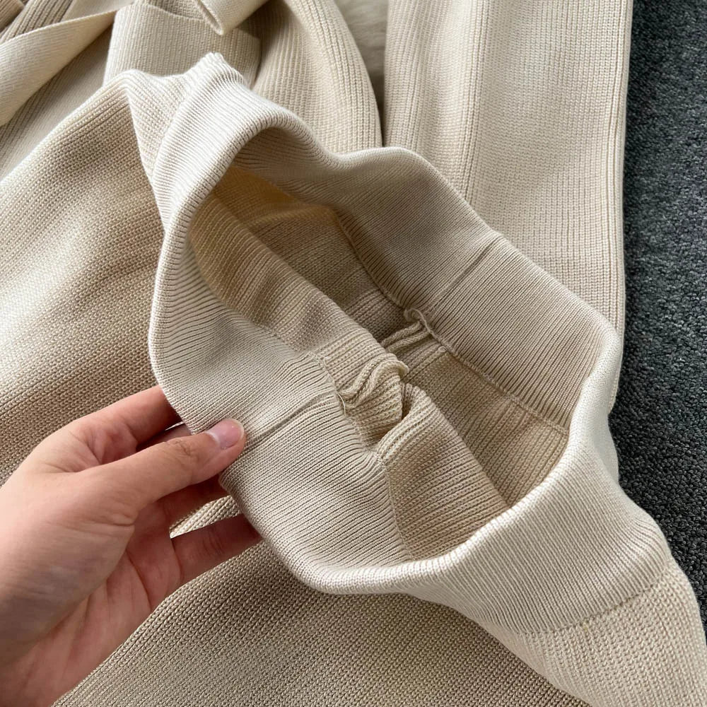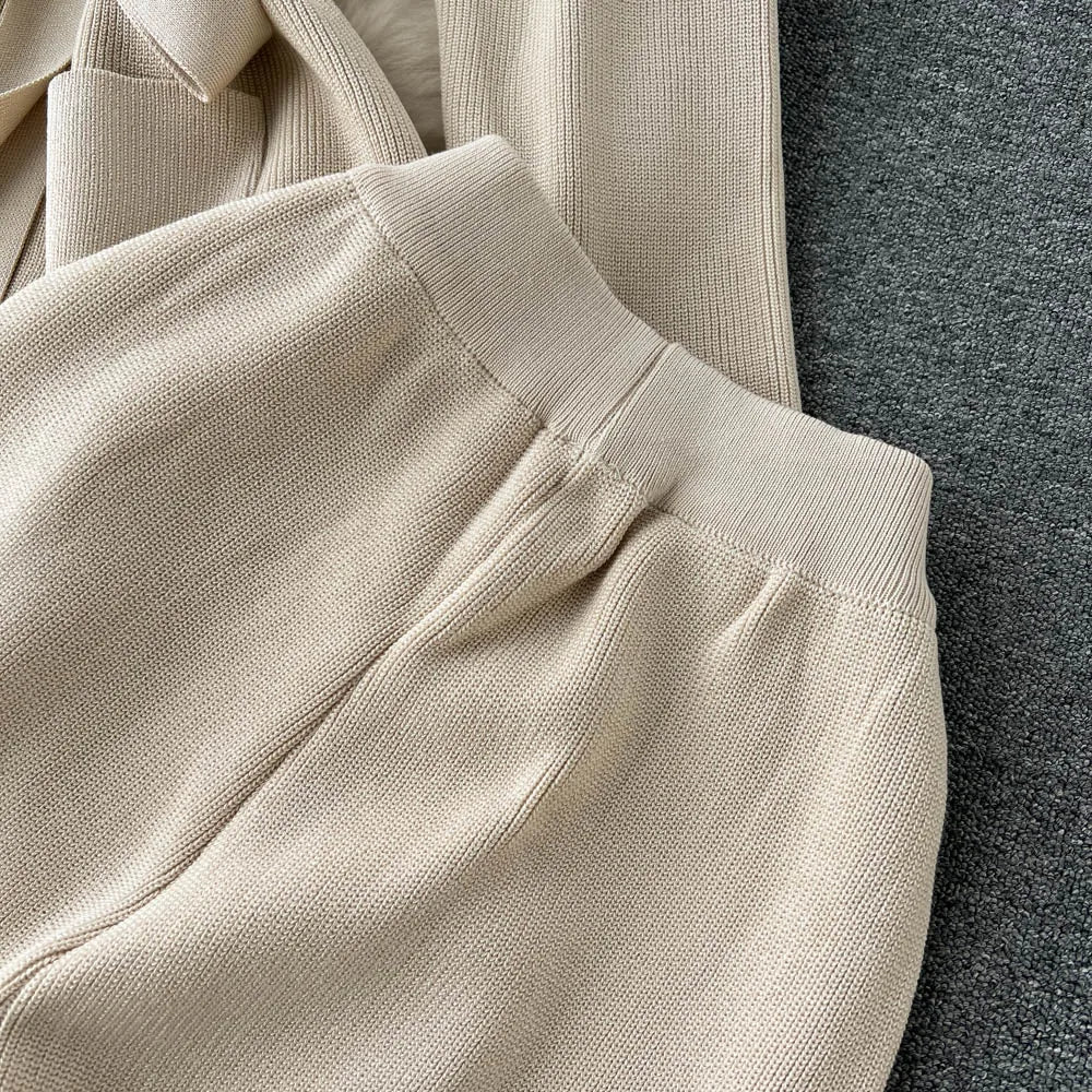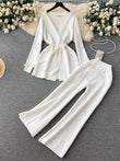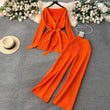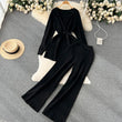 Casual Two Pieces Suits Long Sleeve Knitted Cardigan Coat+Elastic Waist Wide Leg Pants