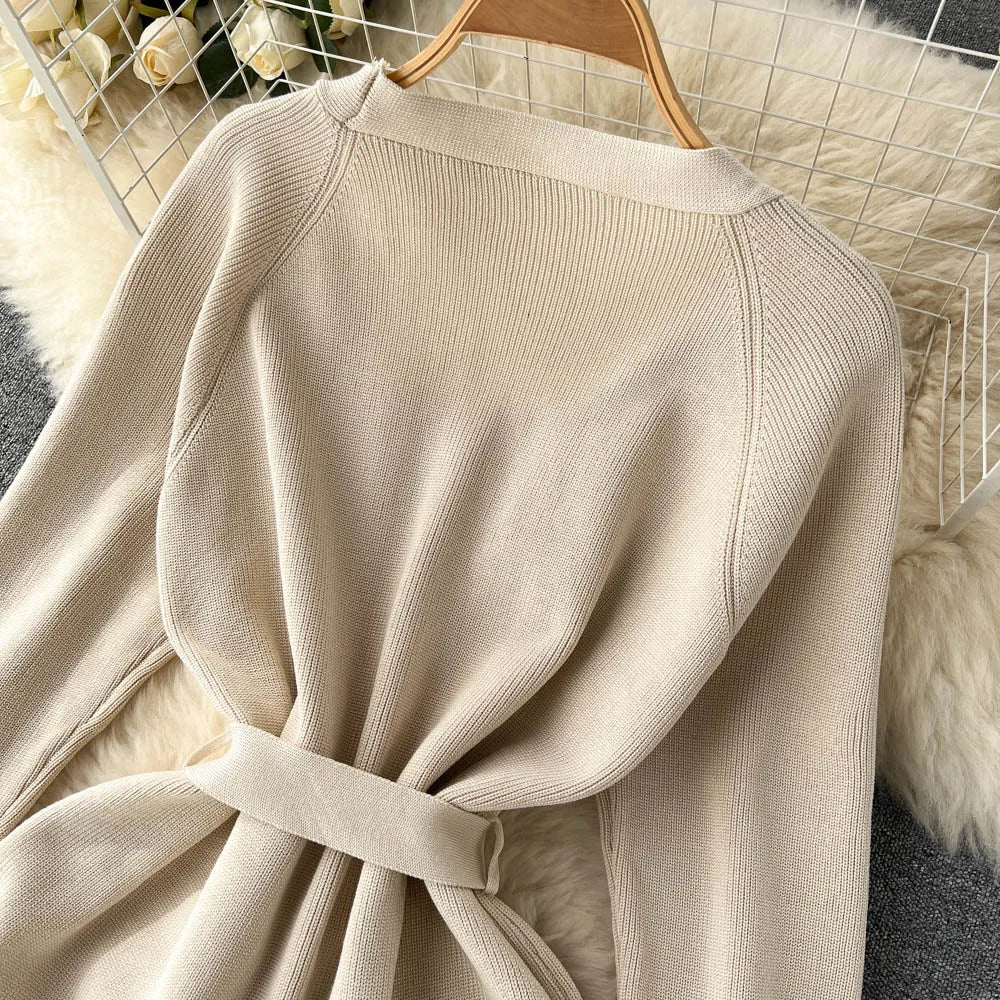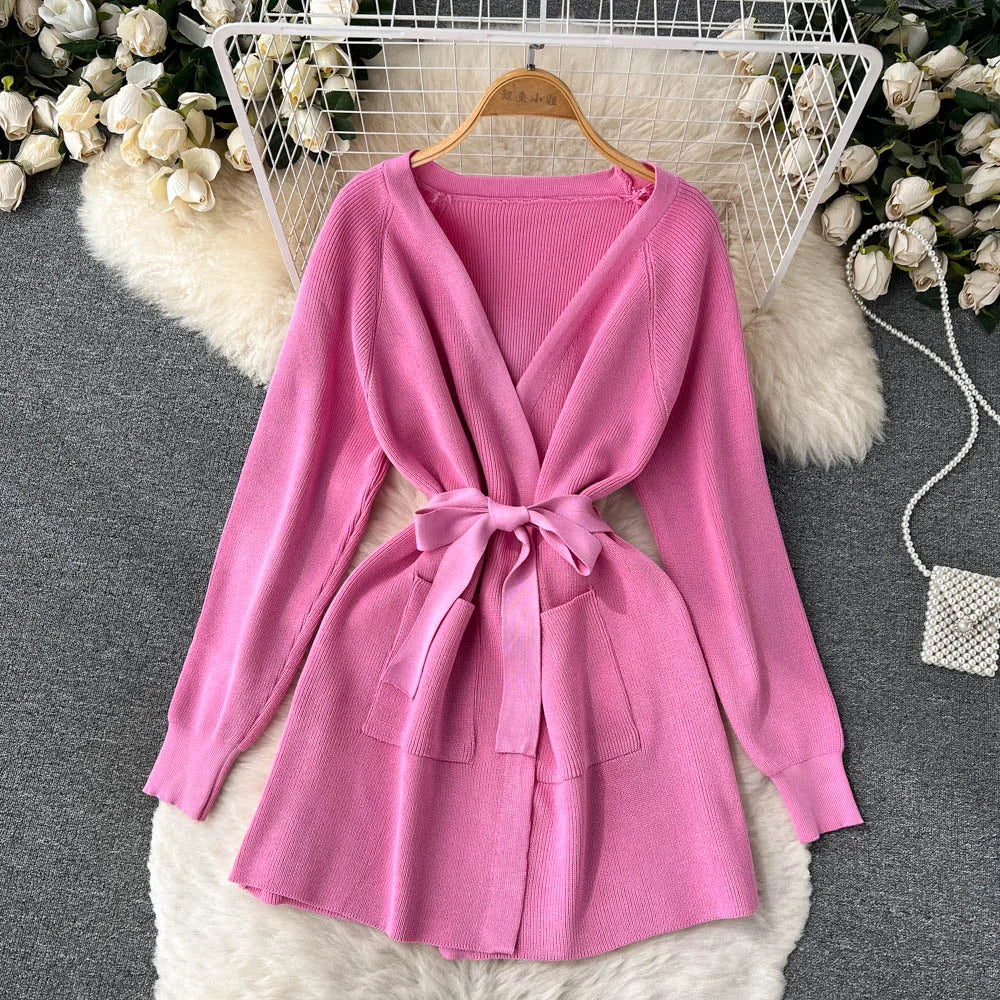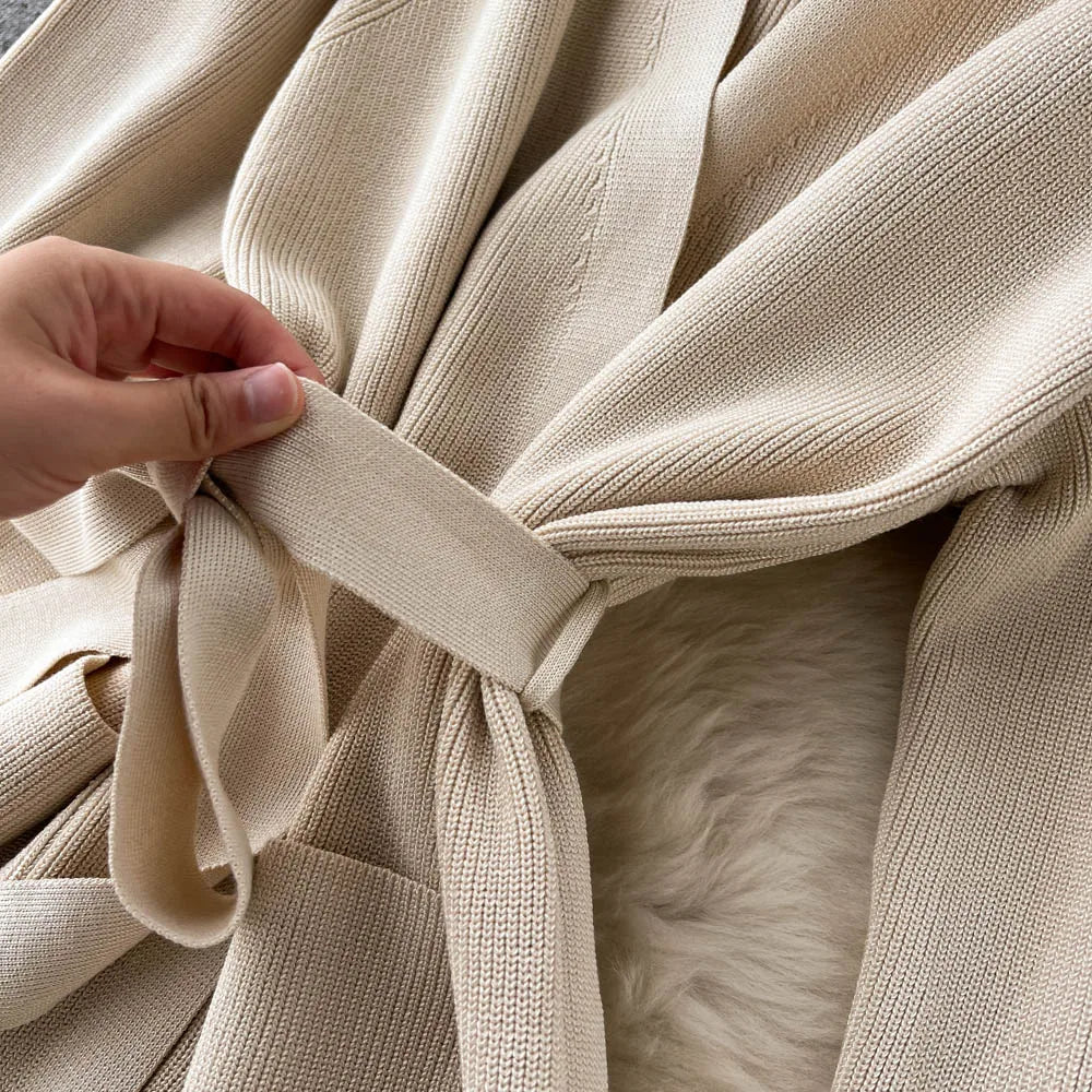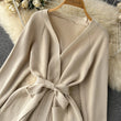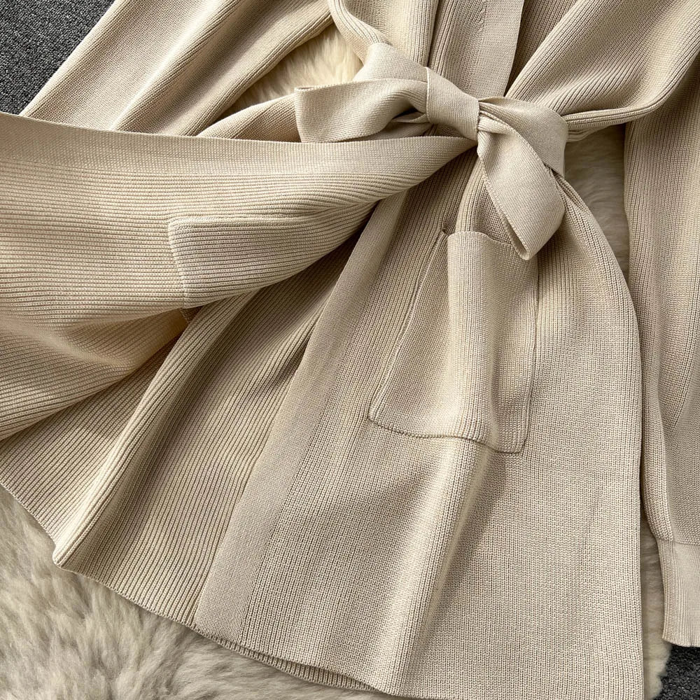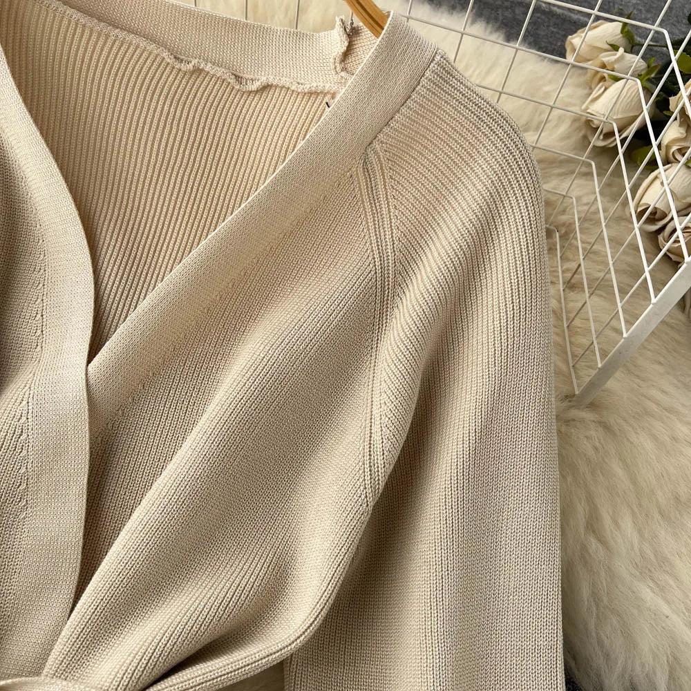 Casual Two Pieces Suits Long Sleeve Knitted Cardigan Coat+Elastic Waist Wide Leg Pants