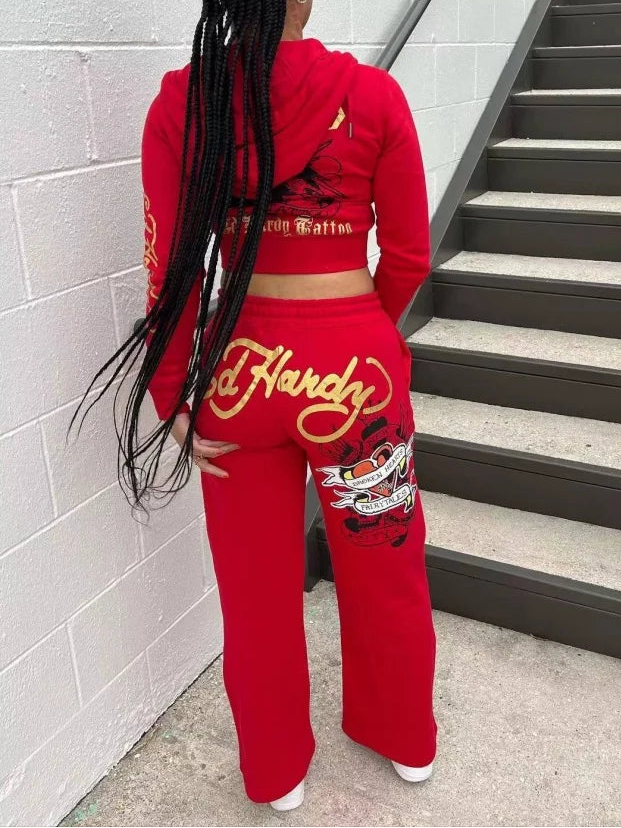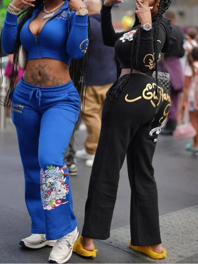 Women Hooded Two Piece Set Slim Fit Ankle Length Pant Suit