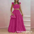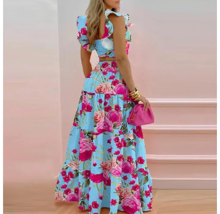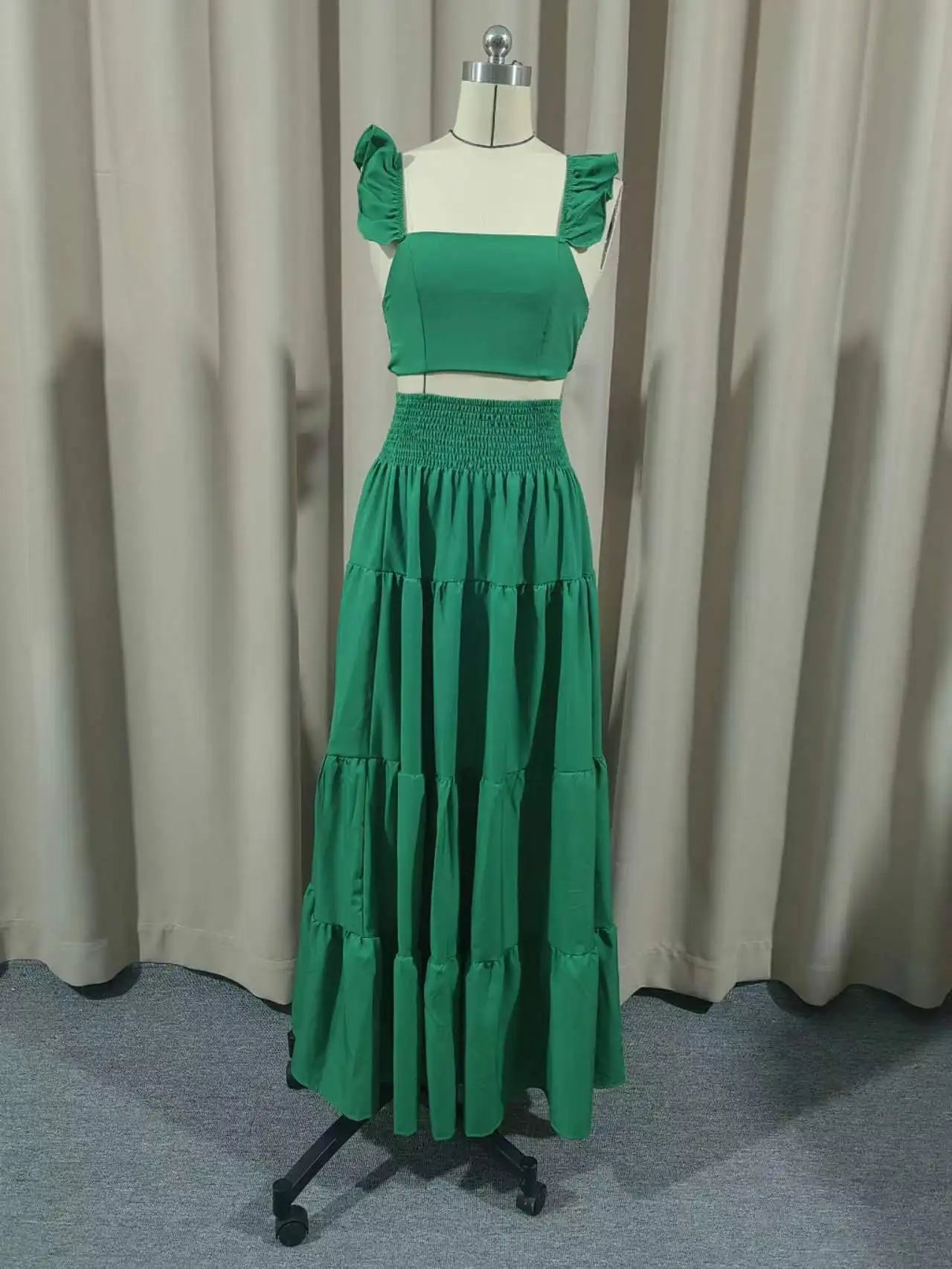 Y2k Two Piece Set Elegant Sexy Collage Sleeveless Top and Maxi Skirt Set