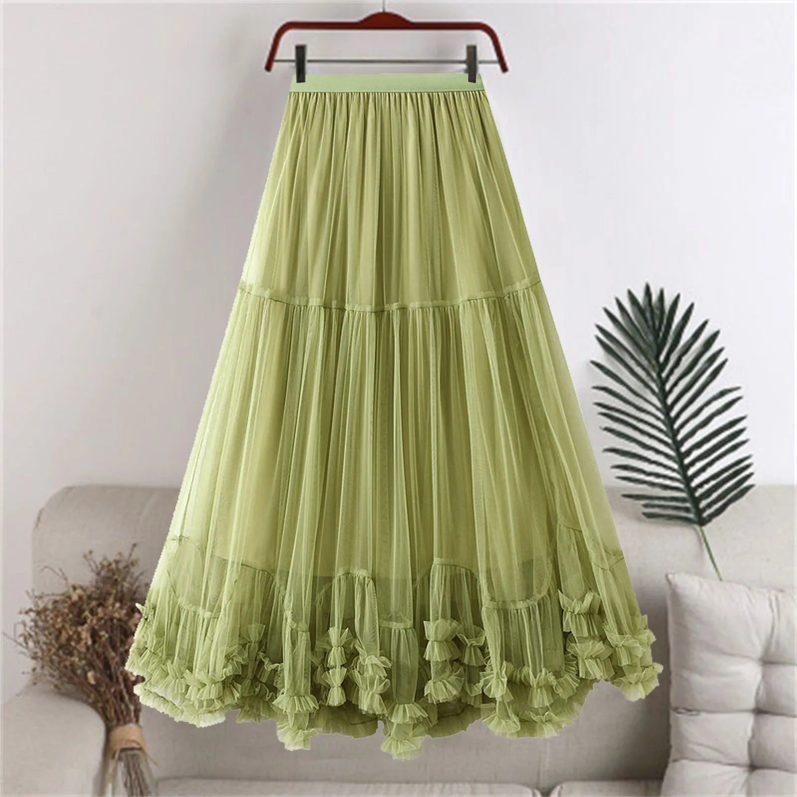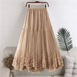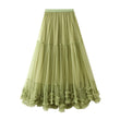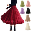 Women Layered Tulle Elastic Waist Mid Length High Waist Mesh Skirt
