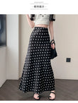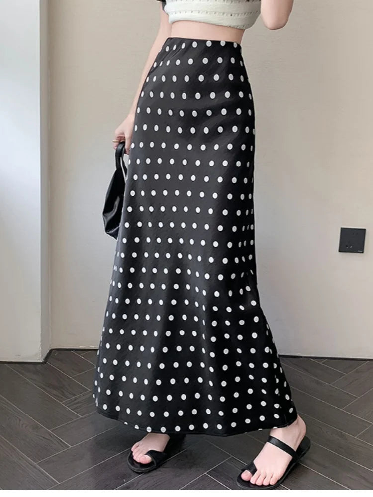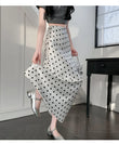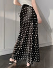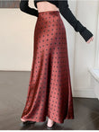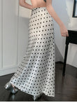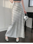 Polka Dot Satin Skirt Women's High Waist Versatile Elegant Dot Long Skirt
