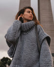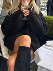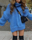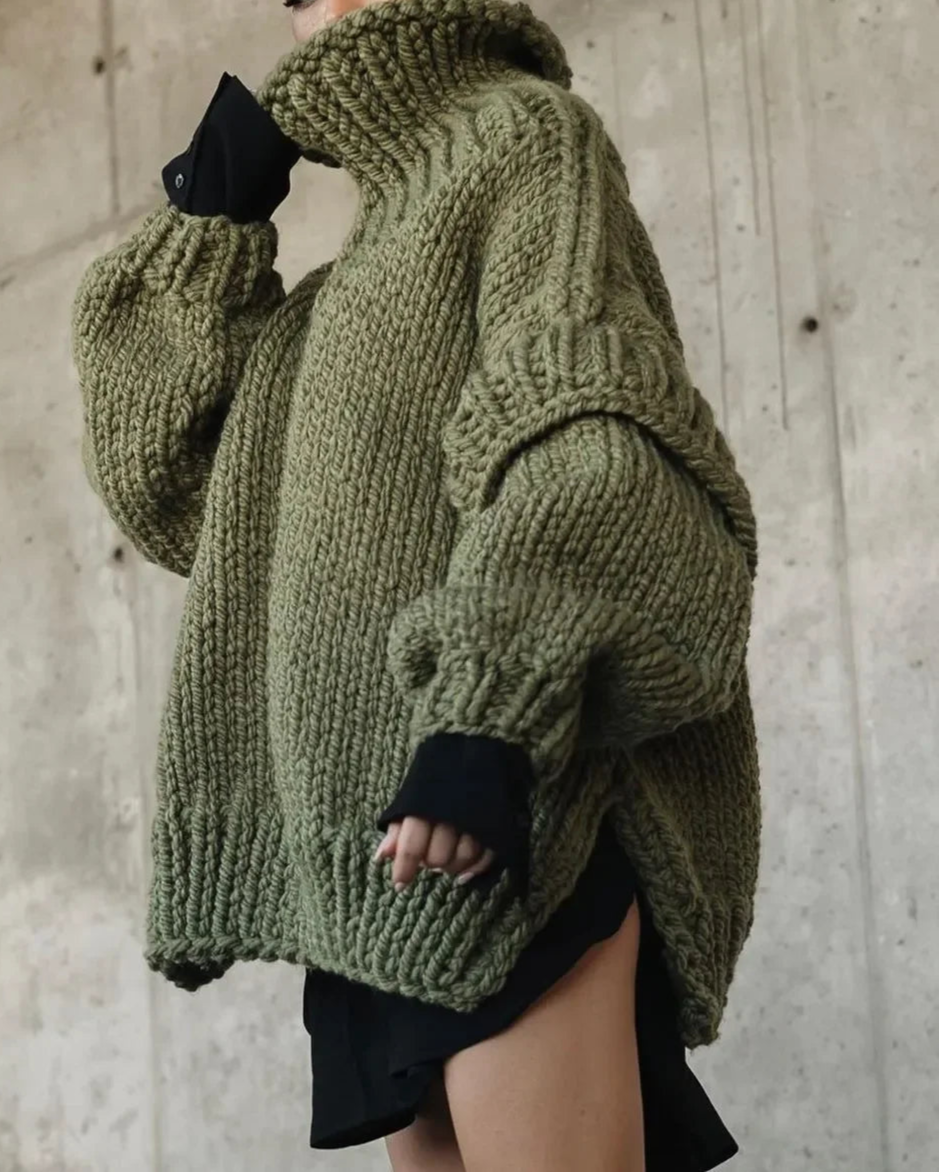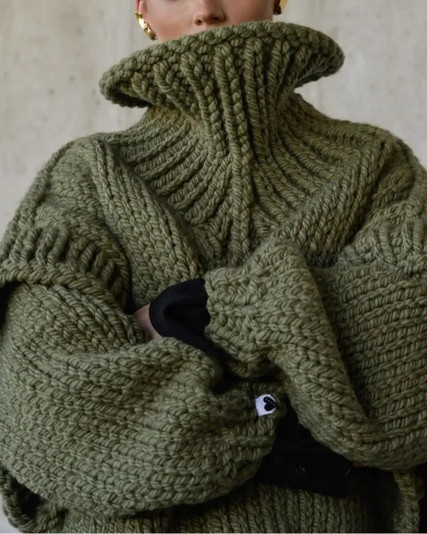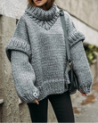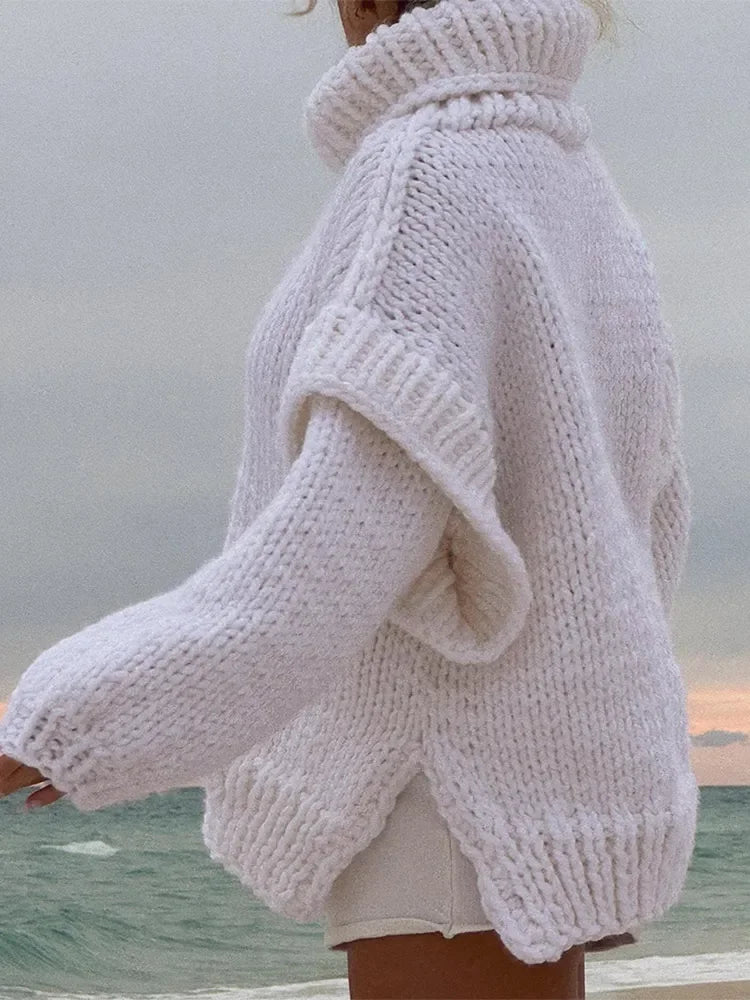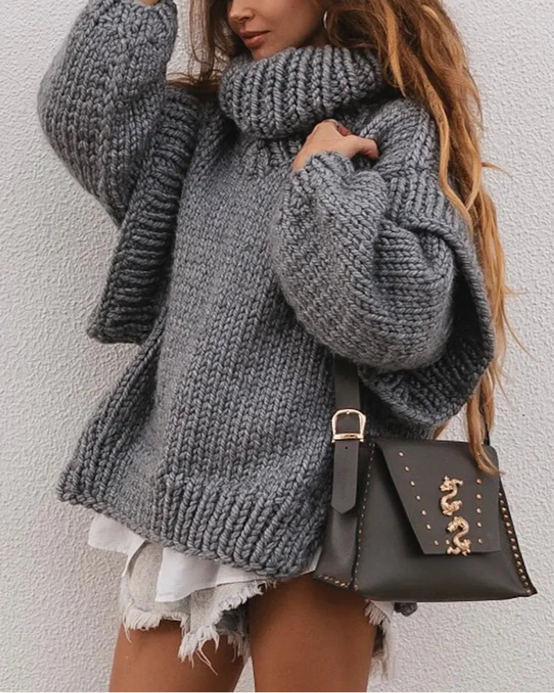 Solid Knit Turtleneck Double Lantern Sleeve Women Pullover Thick Oversized Loose Sweater