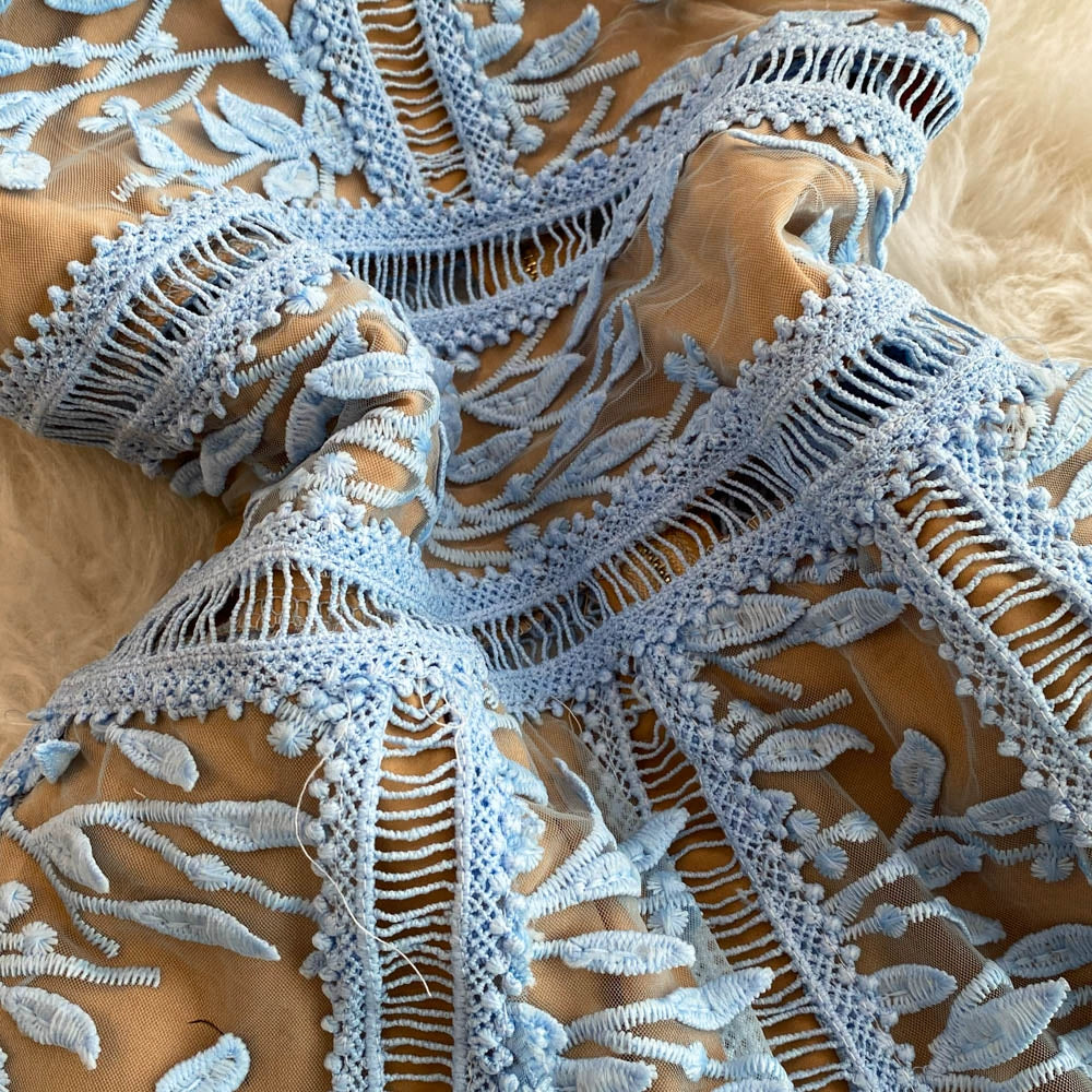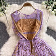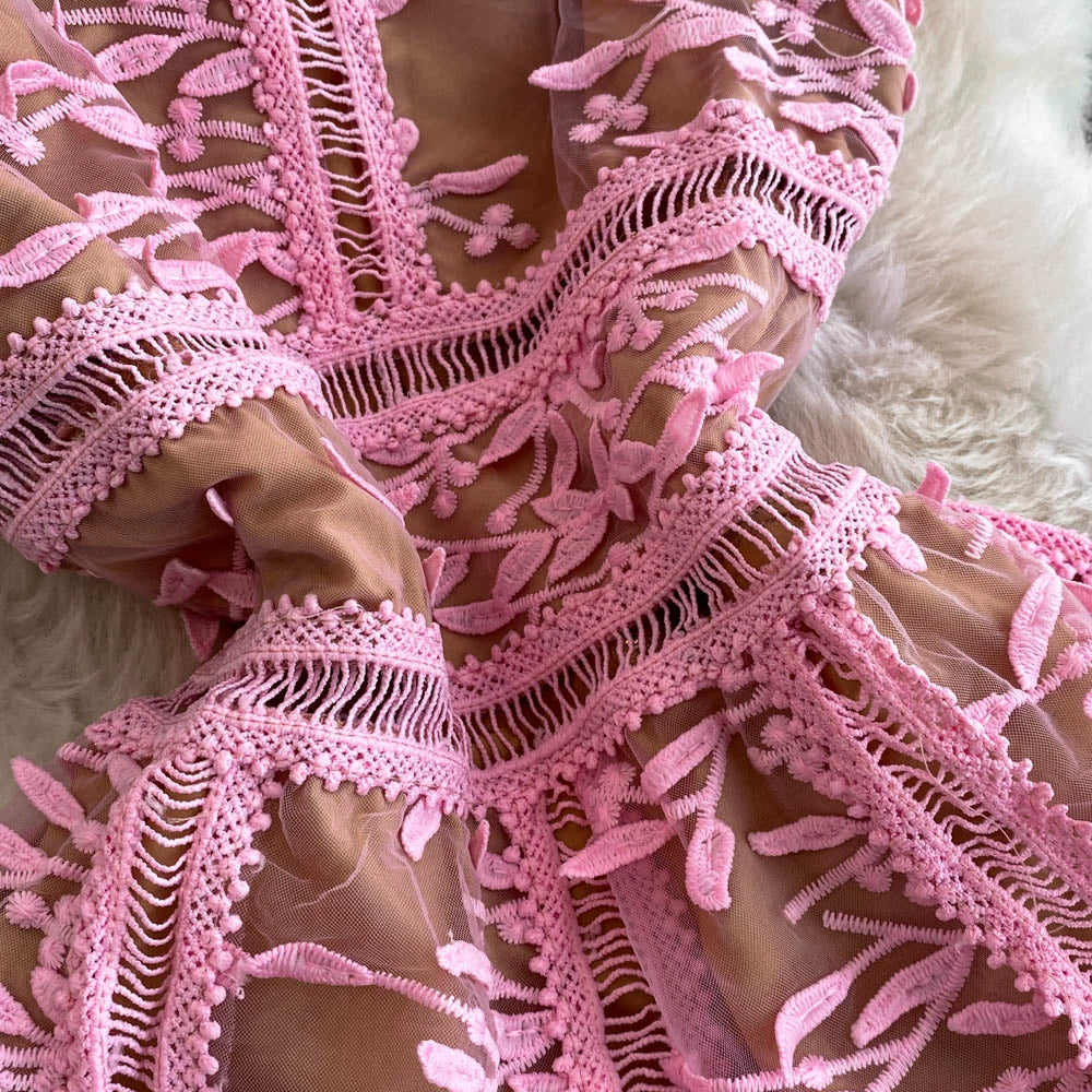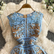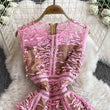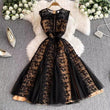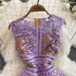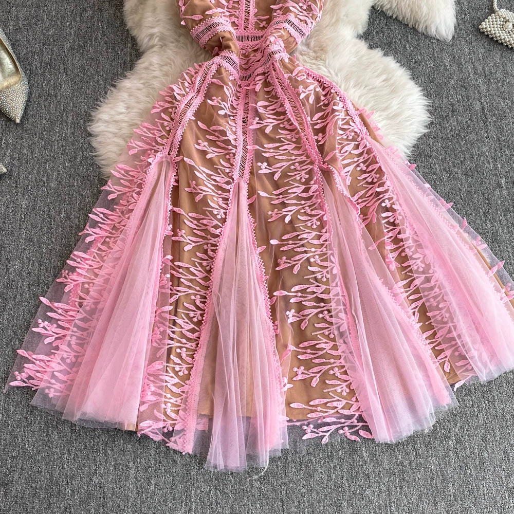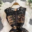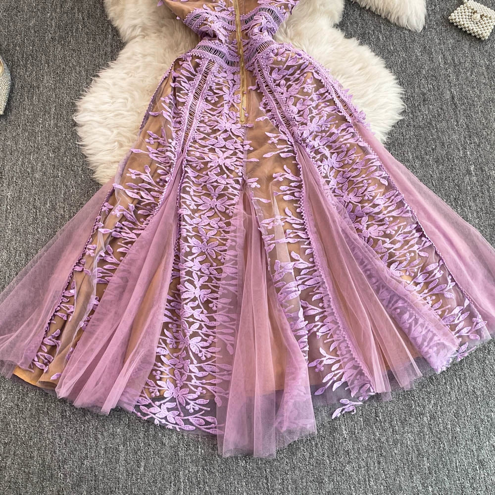 Solid Mesh Embroidery Dress Women's Sleeveless Round Neck Hollow Out Tulles Vestido