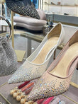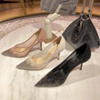 Mesh Pointed Shallow Mouth Sexy Pump Heels Stiletto Shoes Bridal Shoes