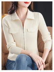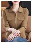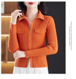 Turndown Collar High End Women Knit Cardigan Sweater Korean Knitwear Tops