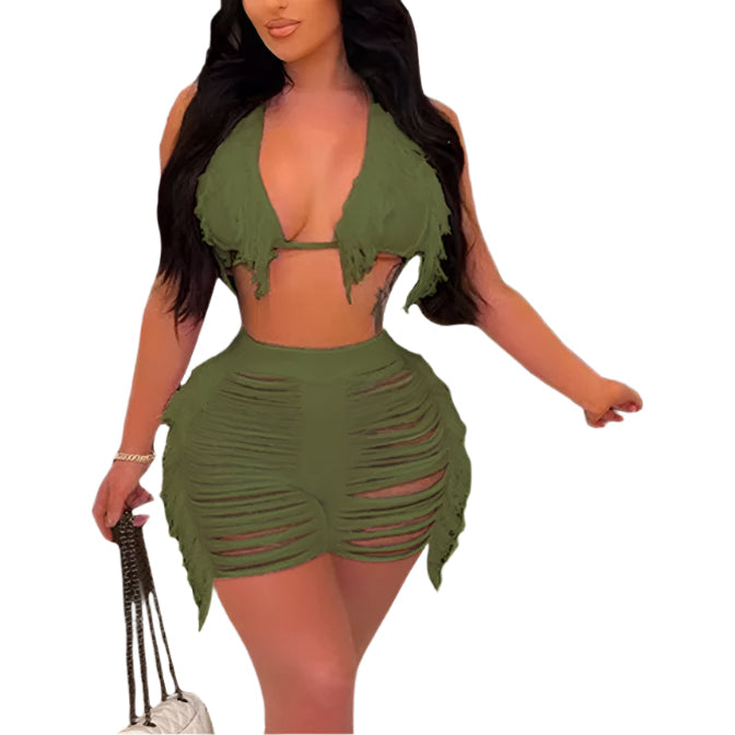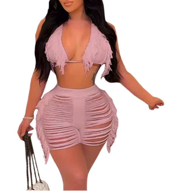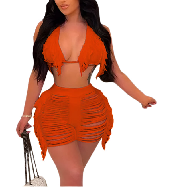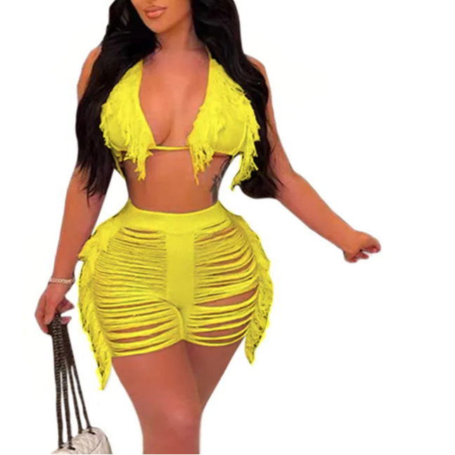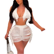 Women Fringe Tassel Bikini Shorts Set Hollow Out Jamaican Crochet Swimwear Summer Beach Knitted Cover Up Swimsuit