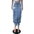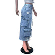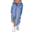 Women's High Split Ripped Denim Maxi Skirt Jeans Cargo Skirt Y2k