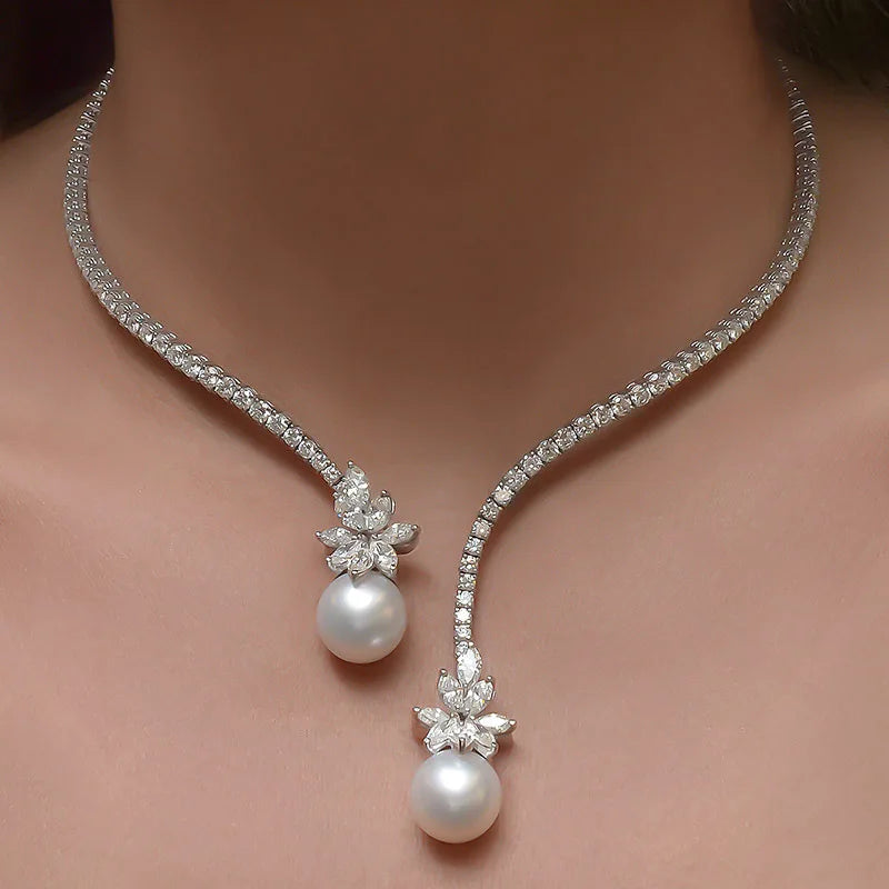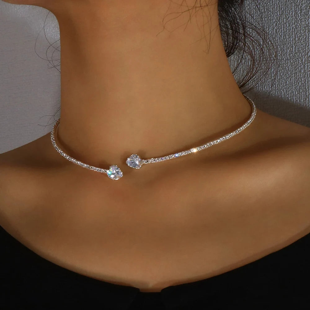 Vintage Open Rhinestones Collar Water Droplets Pendant Necklace