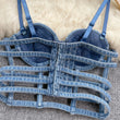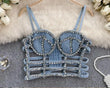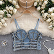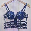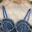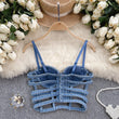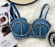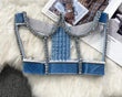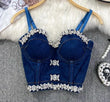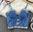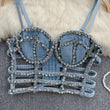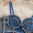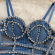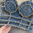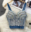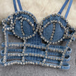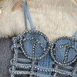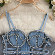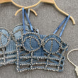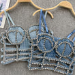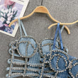 Streetwear Diamonds Denim Sleeveless Backless Sexy Summer Tank Top