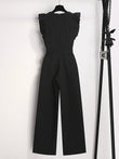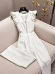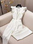 Oversized Luxury Temperament Jumpsuit Women Ruffles Sleeveless Elegant White Jumpsuit with Belt