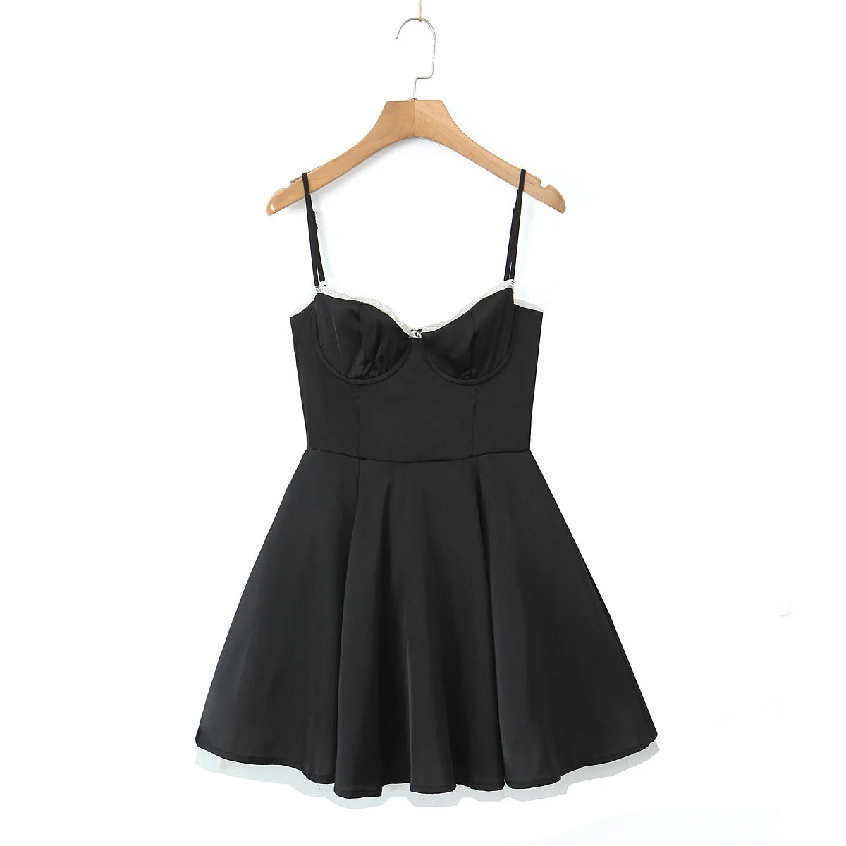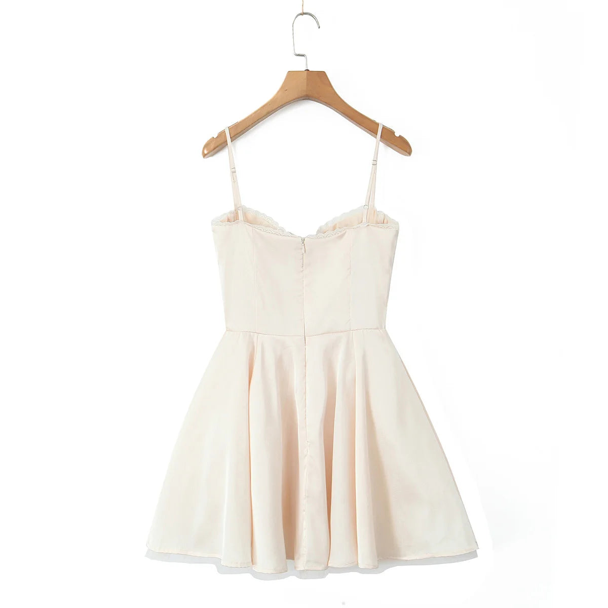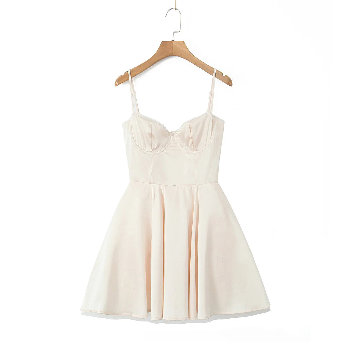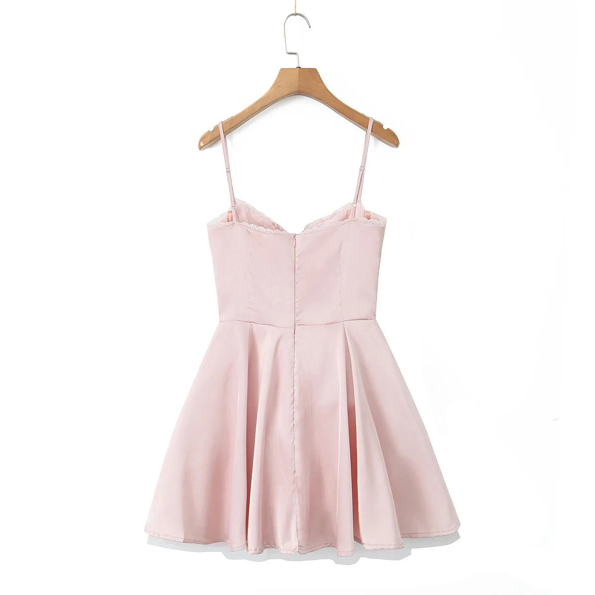 Summer Women Sexy Elegant Sling A-line Mini Dress Birthday Party Satin Dress