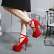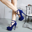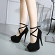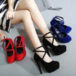 Super High Heels 14cm Platform Women Pumps Flock Cross Buckle Ladies Heels