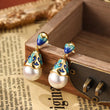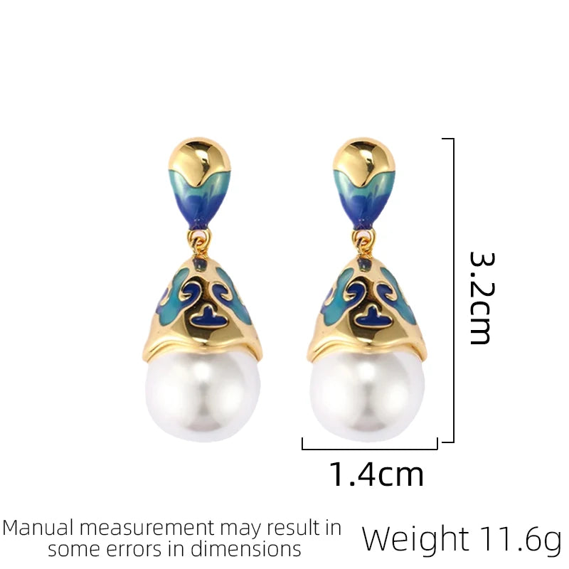 Grid Enamel Earrings Simulated Pearl Dropping Oil Retro Style Earrings for Women