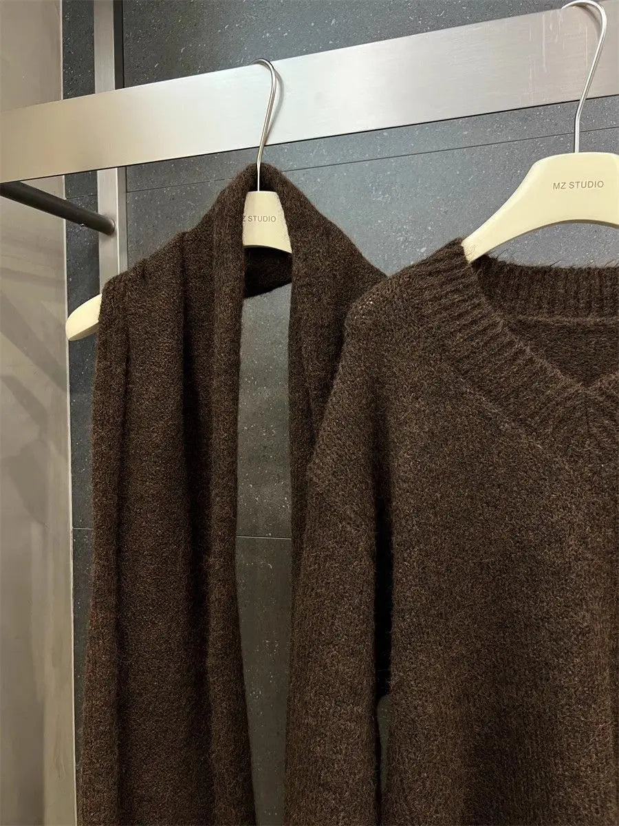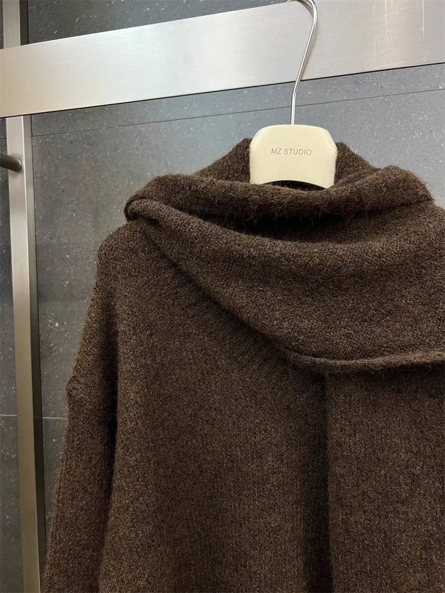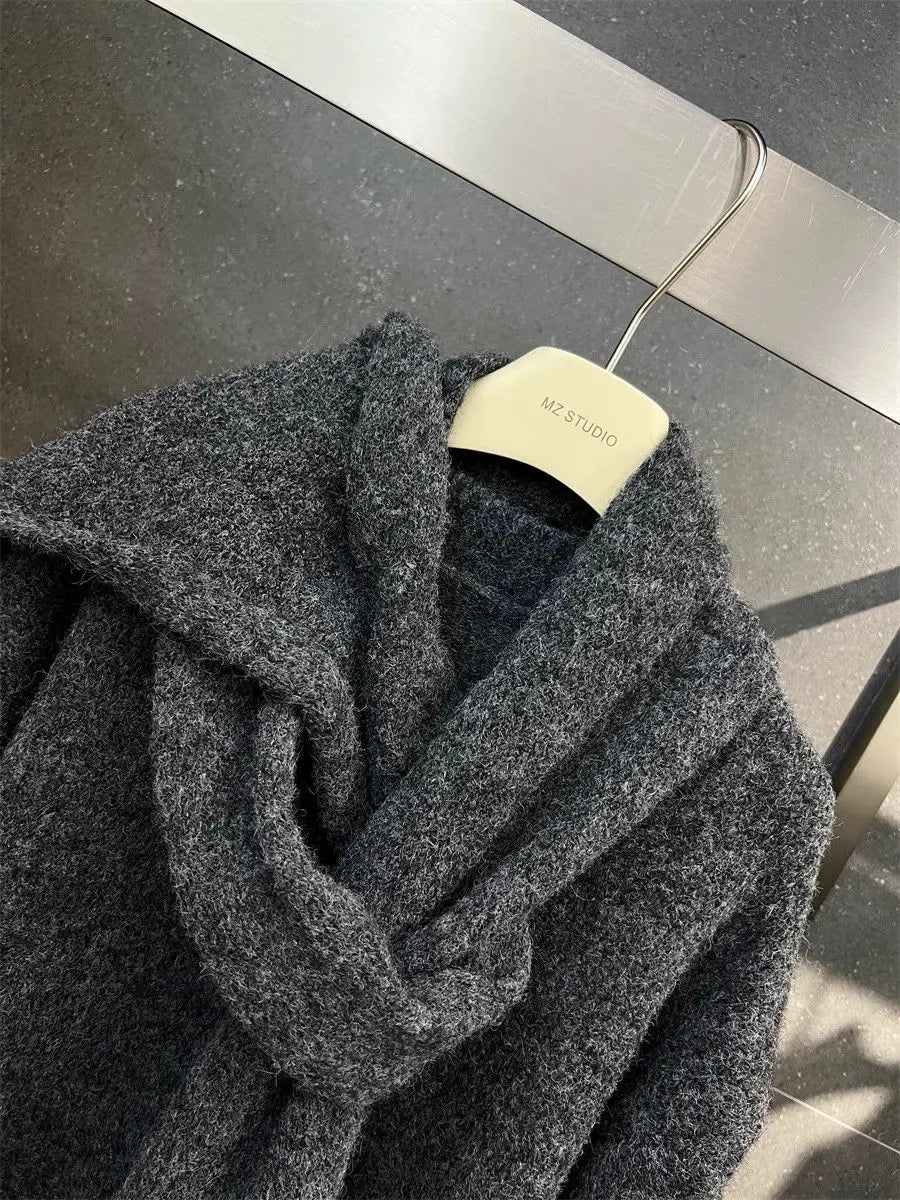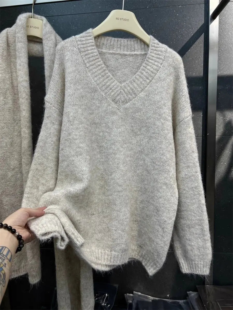 Two Piece Lazy Style Scarf Pullover Sweater Women's Inner Layer Winter Knitted Sweater