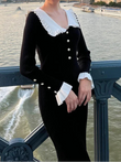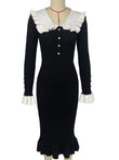 Retro Elegant High Waist Ruffled Maxi Sweater Dresses Knitted Dress