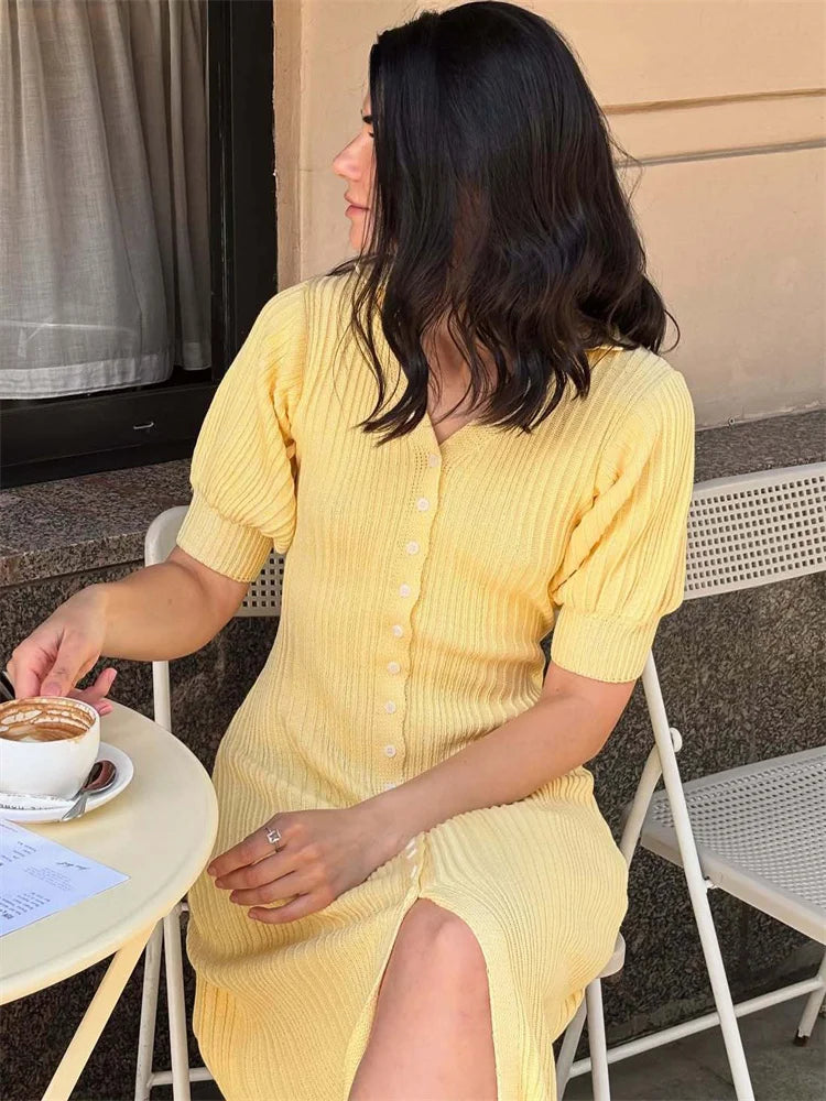 Long Cardigan Knit Dress Women Short Sleeve Maxi Knit Dress
